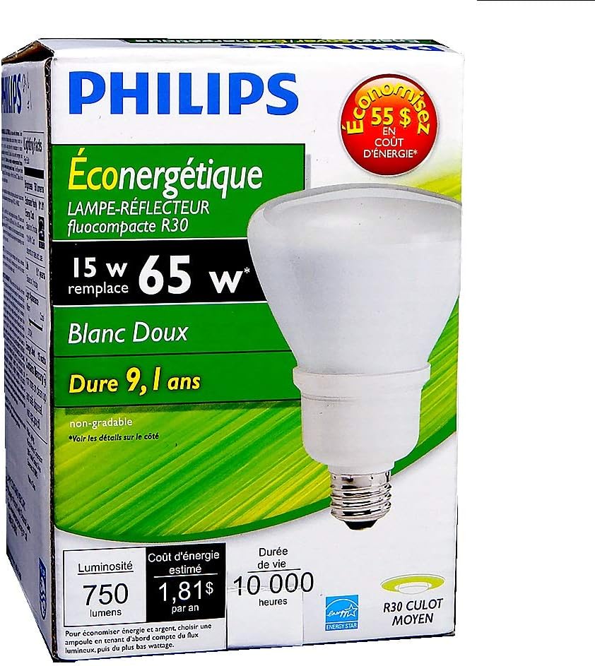 Philips offers a wide variety of light bulbs for your lighting needs. The Energy-Saver 16-Watt (75W) Compact Fluorescent R30 Flood Light Bulb replaces the 65-Watt incandescent indoor flood light. This bulb has a soft white light, similar to incandescent light, creating a relaxing and comfortable environment. It is ideal for use in kitchens, living rooms, dining rooms, offices, family rooms and bedrooms.