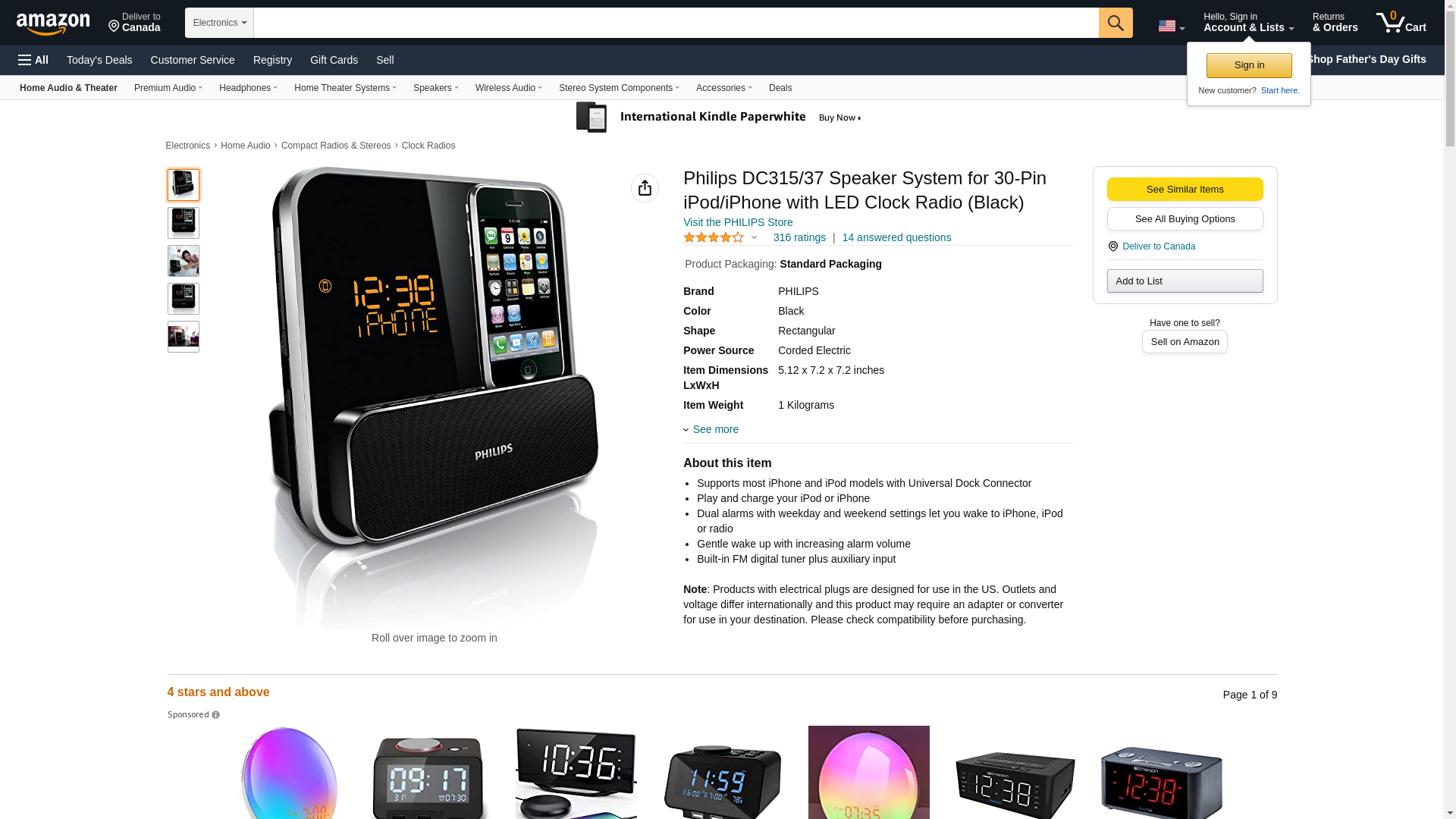 Philips DC315/37 Speaker System for 30-Pin iPod/iPhone with LED Clock Radio (Black)