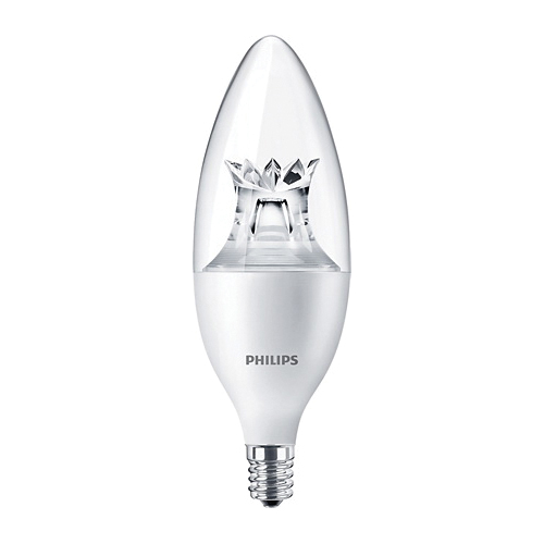 - Philips B12 Blunt-Tip 7W Decorative Candle LED light bulbs offer classic, made to be seen shape and provide 500 Lumen’s of soft white dimmable light, equivalent to 60-watt incandescents with 80% less energy use. These bulbs fit small candelabra (E12) fixtures