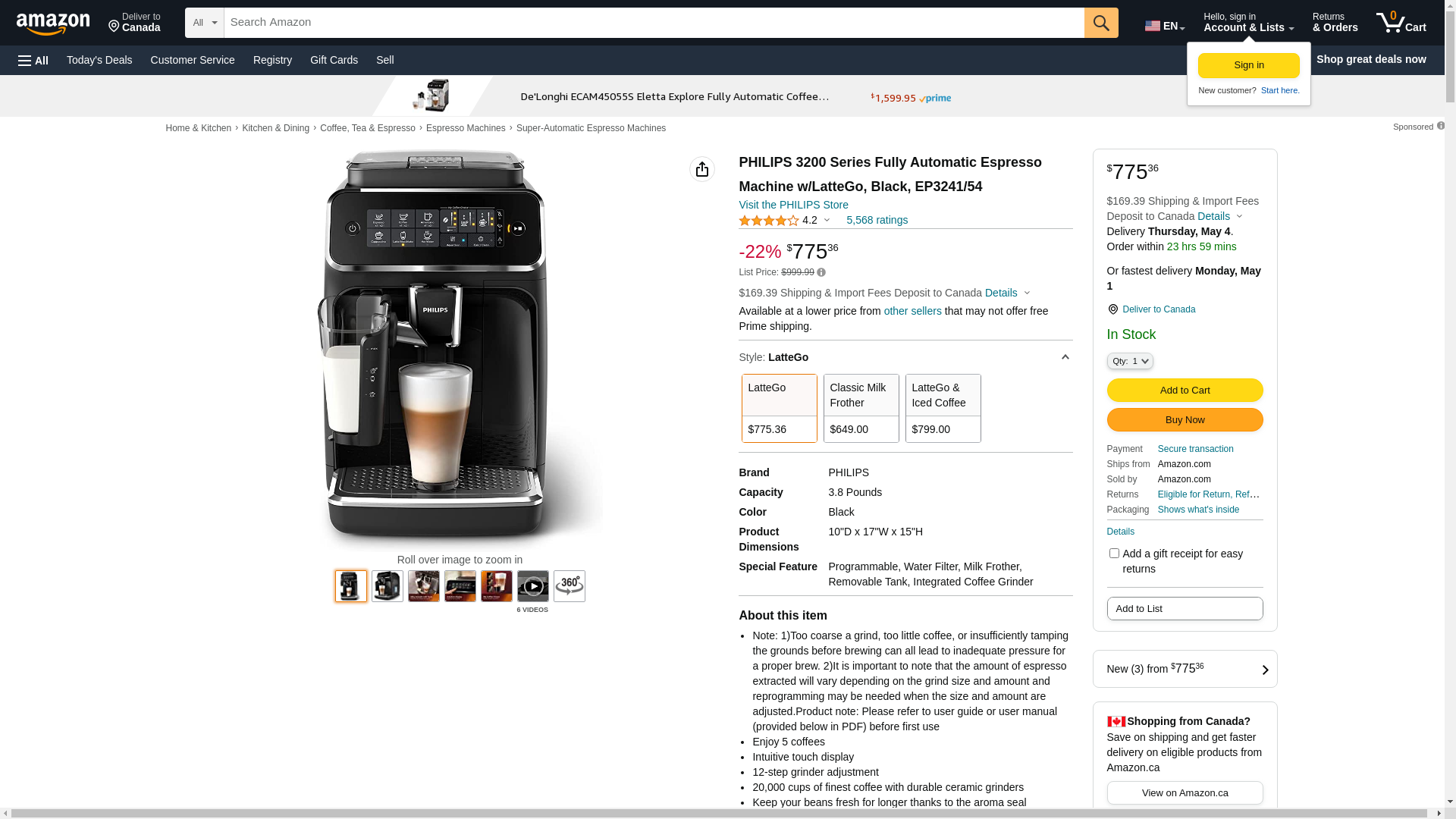 Philips 3200 Series Fully Automatic Espresso Machine w/ LatteGo, Black Black EP3241/54 - Best Buy