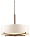 This Fisher Island collection of hanging pendant lighting fixtures features a 3-light merlot bronze finish. The contemporary chic style is further enhanced with the ivory stylized fabric shade. Omitting stem/cord, it measures 26.88 in. W x 20 in. H. Pendant is additionally supplied with 4 in., 8 in., 12 in., and 24 in. internally threaded stems that may be used combined to fit your desired decor.