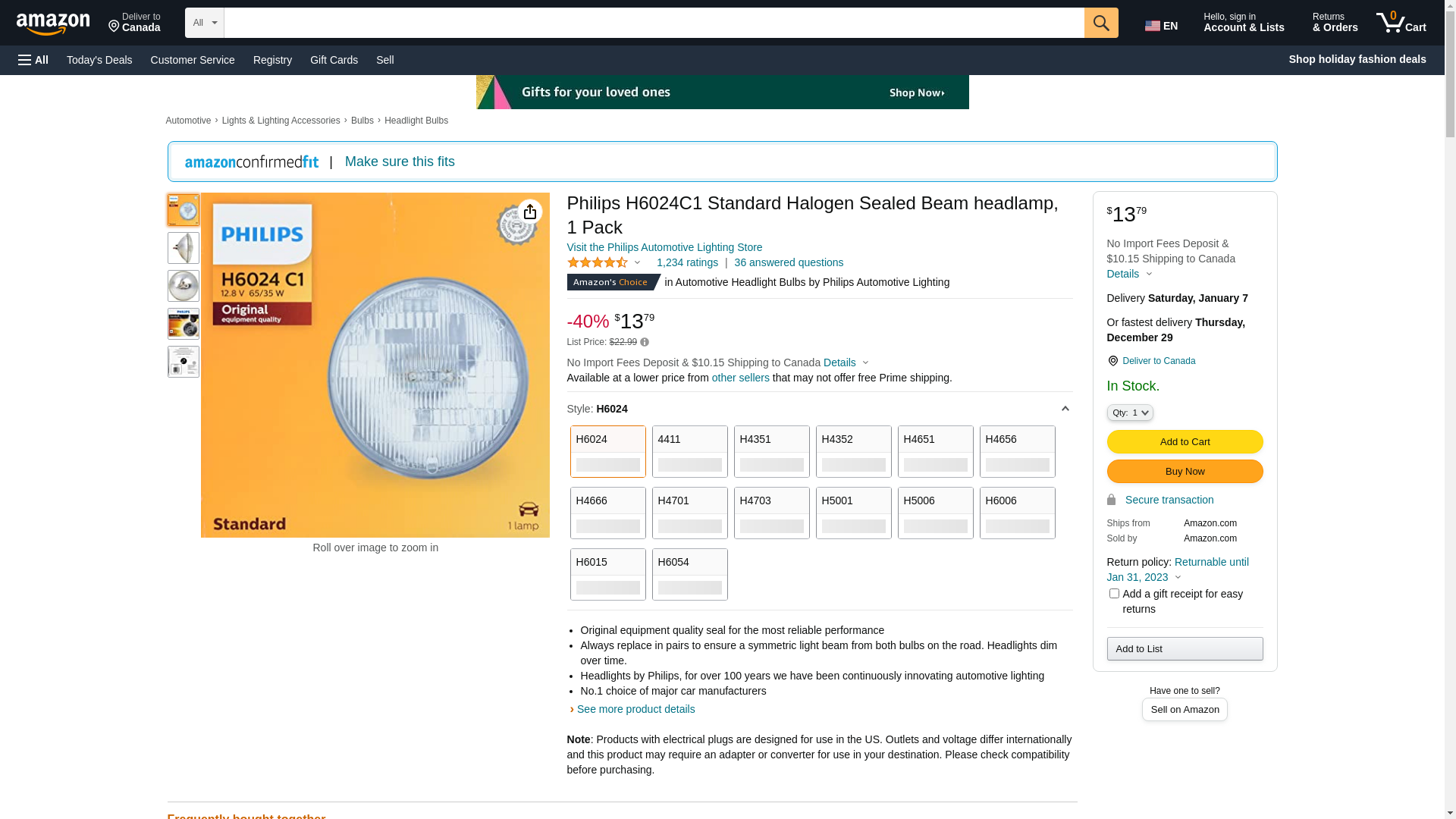 ![]() BulbAmerica | H6024C1 | 1 | 1 | 1 @ $16.99 | |