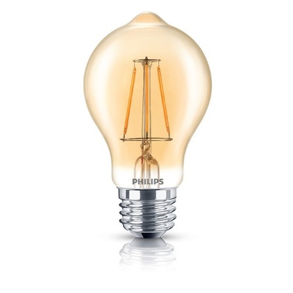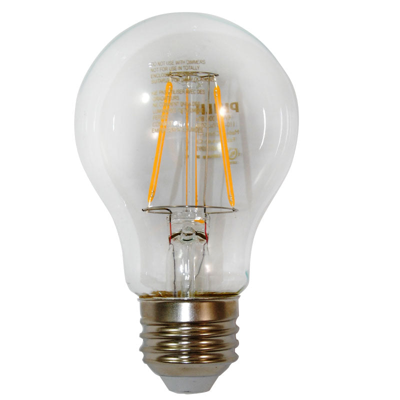 - Philips A19 Vintage Filament LED light bulbs are made to be seen, with a classic shape and glowing filament that shines with 350 lumens (40-Watt equivalent) of warm, dimmable light at a quarter of the energy use of traditional incandescent bulbs.