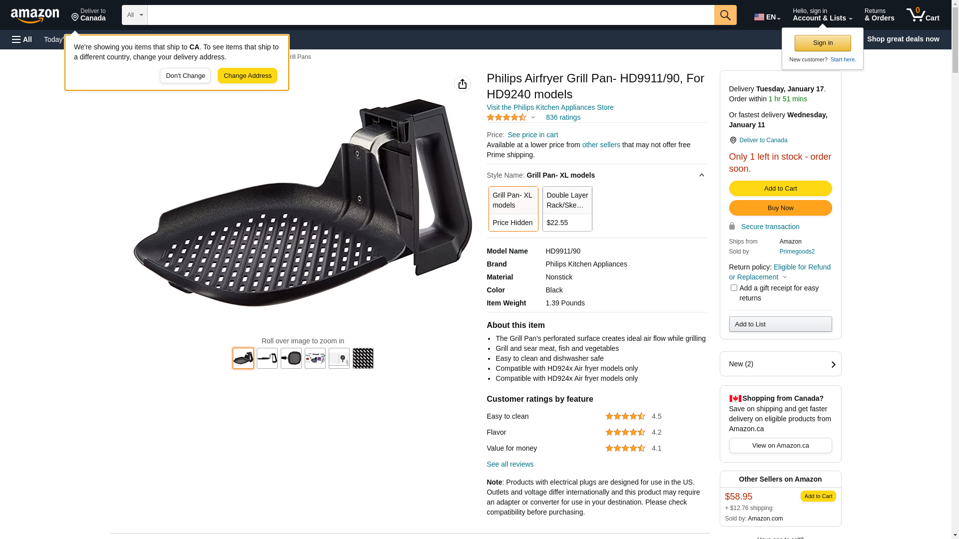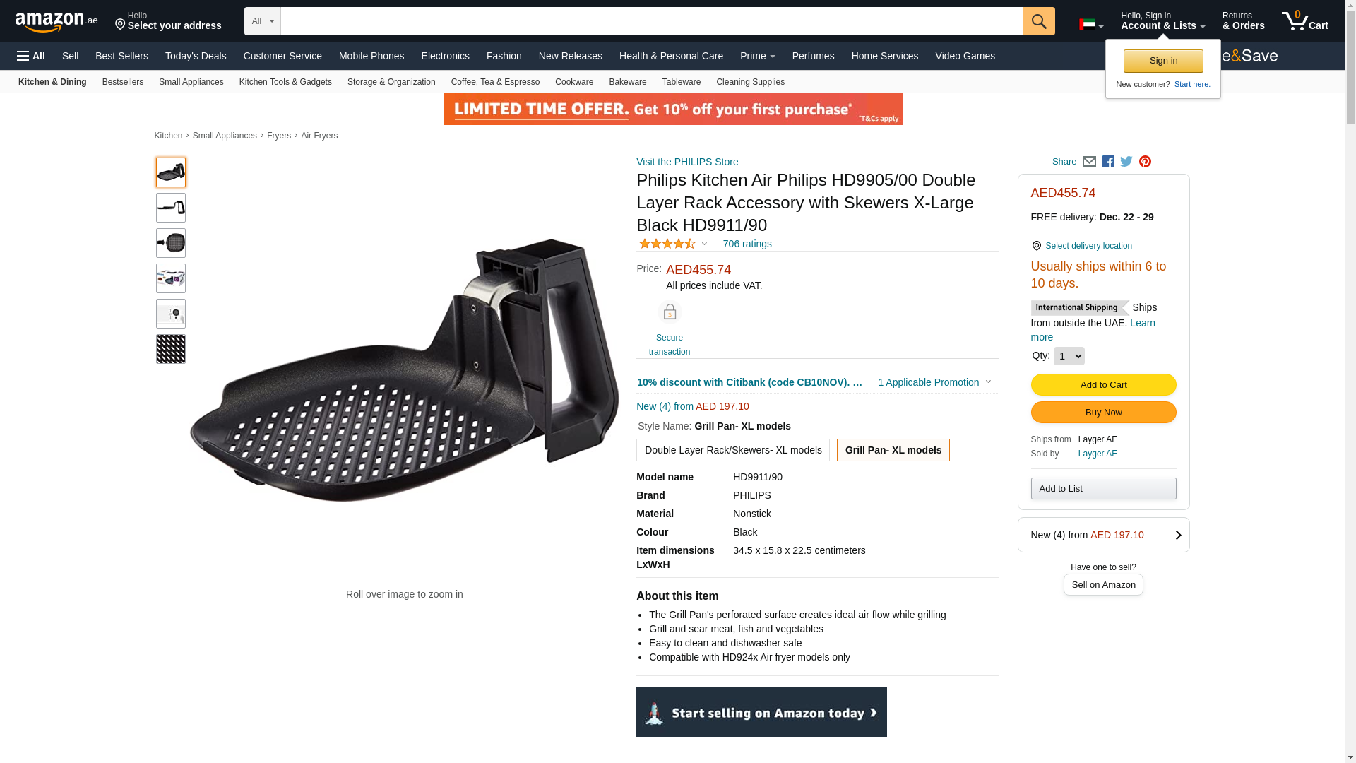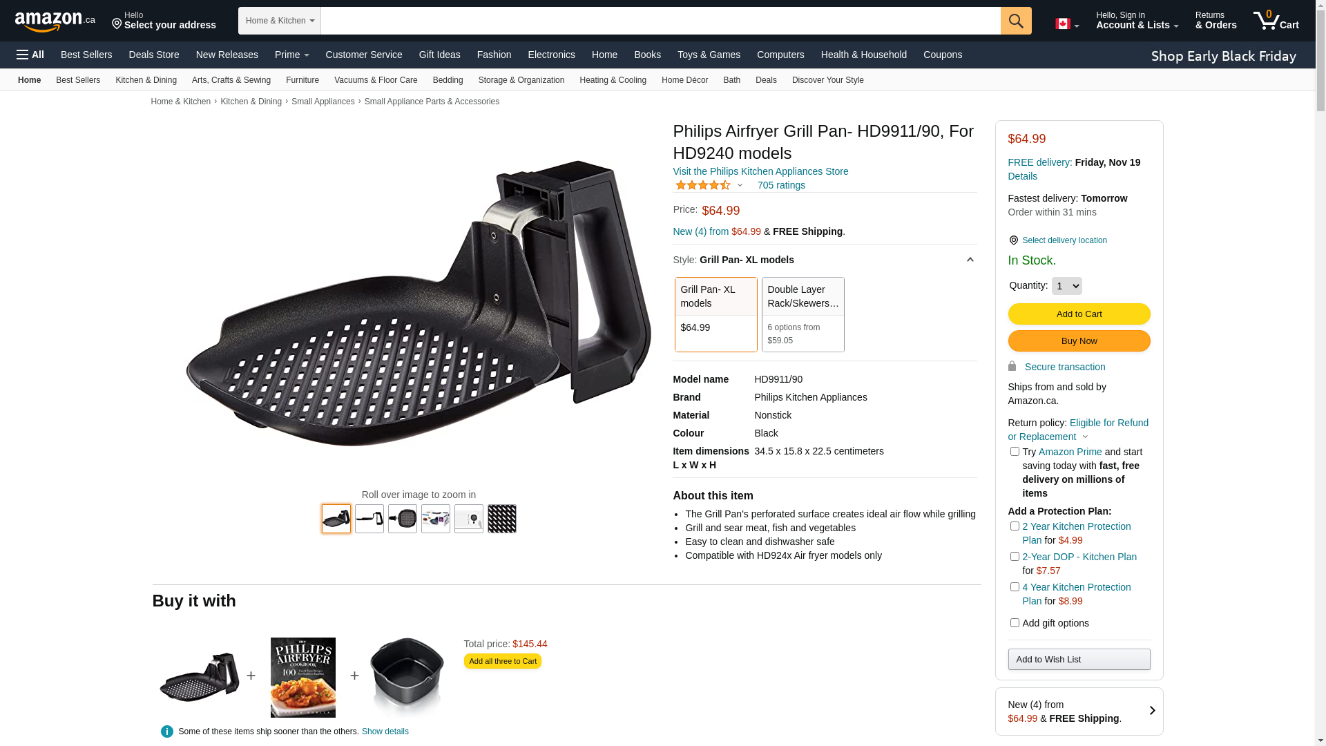 Philips HD9911/90 Airfryer Grill Pan Accessory, for XL model Airfryers