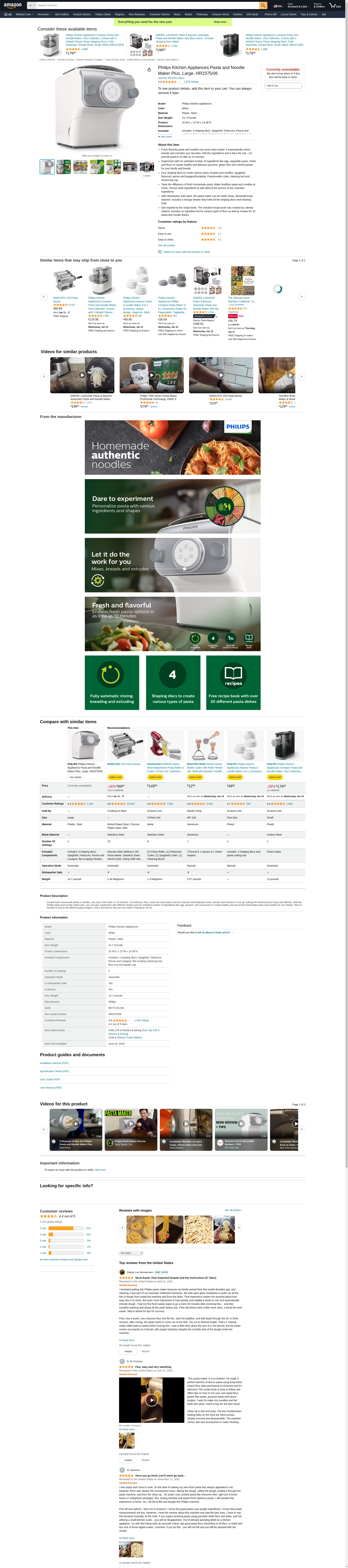 Philips Pasta and Noodle Maker Plus, Large, HR2375/06