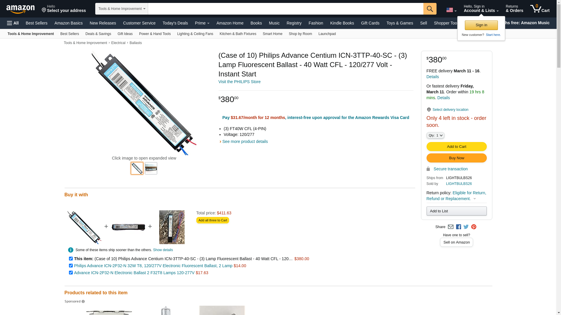 (Case of 10) Philips Advance Centium ICN-3TTP-40-SC - (3) Lamp Fluorescent Ballast - 40 Watt CFL - 120/277 Volt - Instant Start