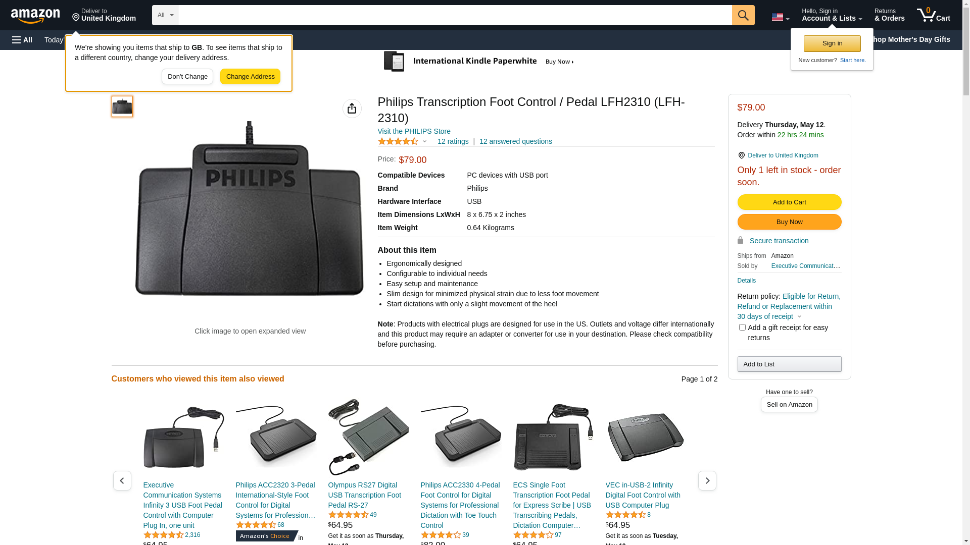 Philips Transcription Foot Control / Pedal LFH2310 (LFH-2310)