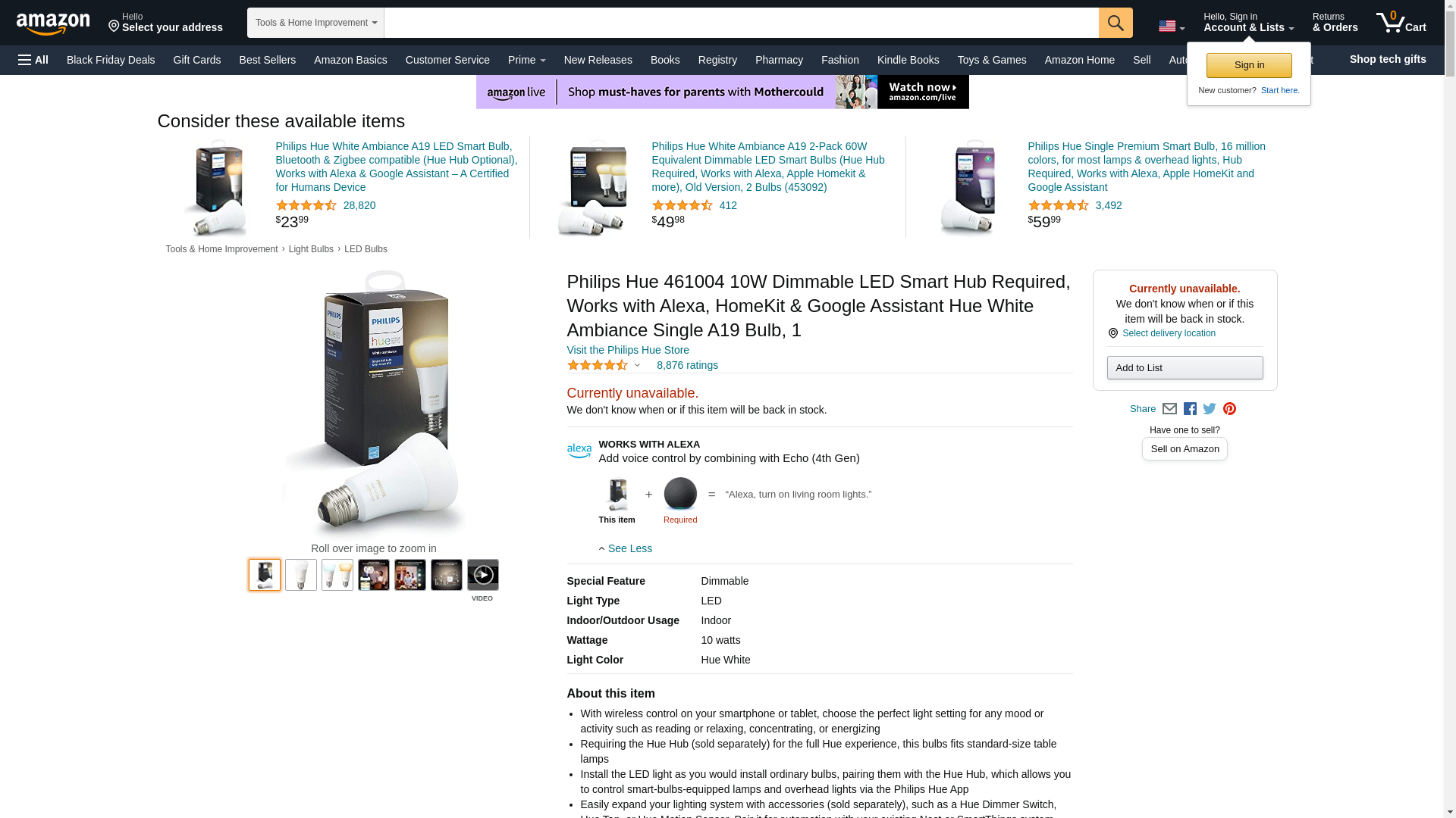Philips 461004 Hue White Ambiance A19 60W Equivalent Dimmable LED Smart Bulb (Compatible with Amazon Alexa, Apple HomeKit, and Google Assistant)