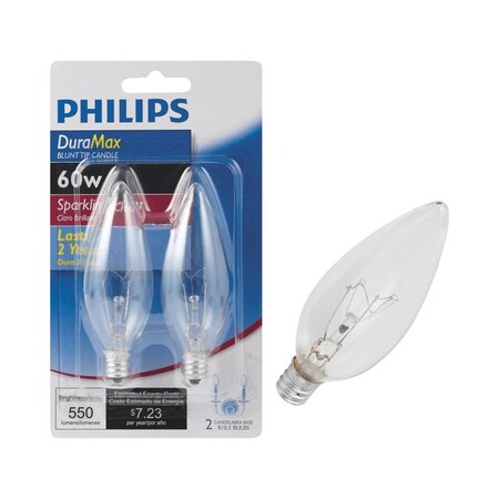 Phillips 168260 60 Watt Clear Duramax Blunt Tip Chandelier Light Bulb 2 Count