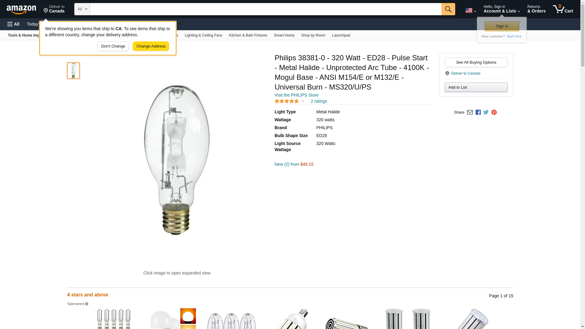 Philips 383810 MS320/U/PS Wattage 320 Watt - ANSI Code M154/E or M132/E - Bulb Shape ED28 - Base Type Mogul E39 - Color Temperature 4100 Kelvin - CRI 62 - Protected No - Life Hours 20000 - Lumens Initial 30000 - Burn Position Universal -