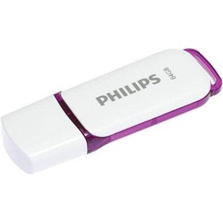 Philips PHMMD64GSNOWU2 USB2.0 Snow 64GB Flash Drive, White & Purple
