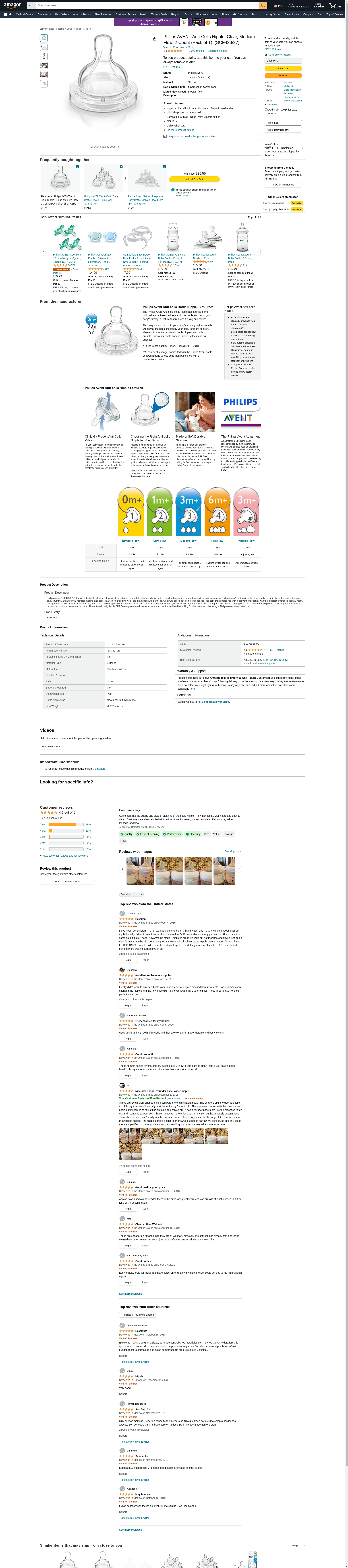 Philips AVENT Anti-Colic Nipple, Clear, Medium Flow, 2 Count (Pack of 1), (SCF423/27)
