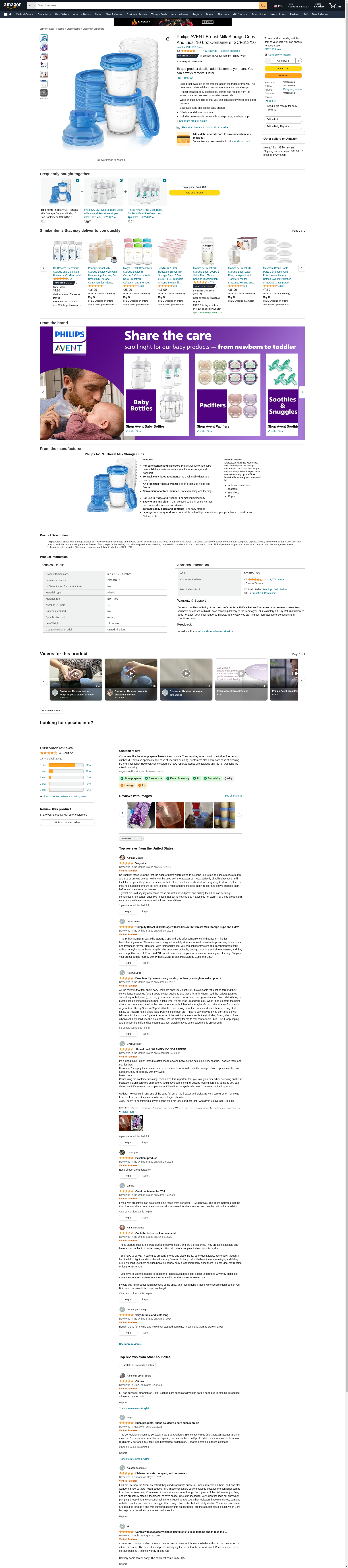 Philips AVENT Breast Milk Storage Cups And Lids, 10 6oz Containers, SCF618/10