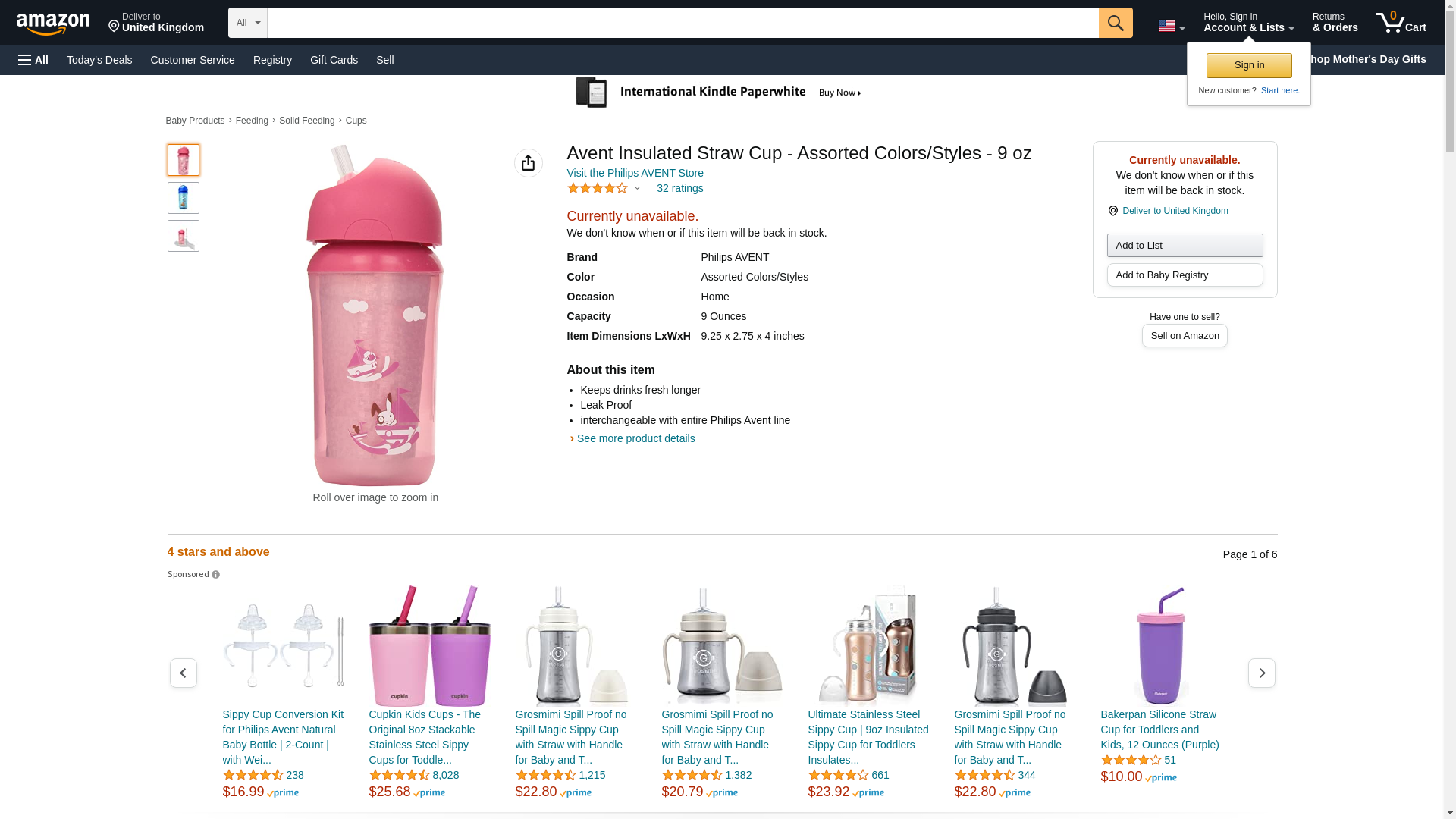 Avent Insulated Straw Cup - Assorted Colors/Styles - 9 oz