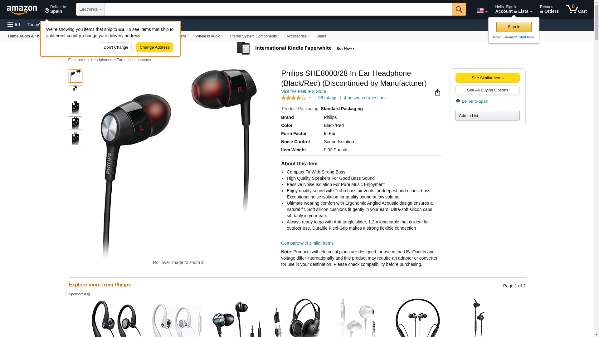 Philips SHE8000/28 In-Ear Headphone (Black/Red) (Discontinued by Manufacturer)