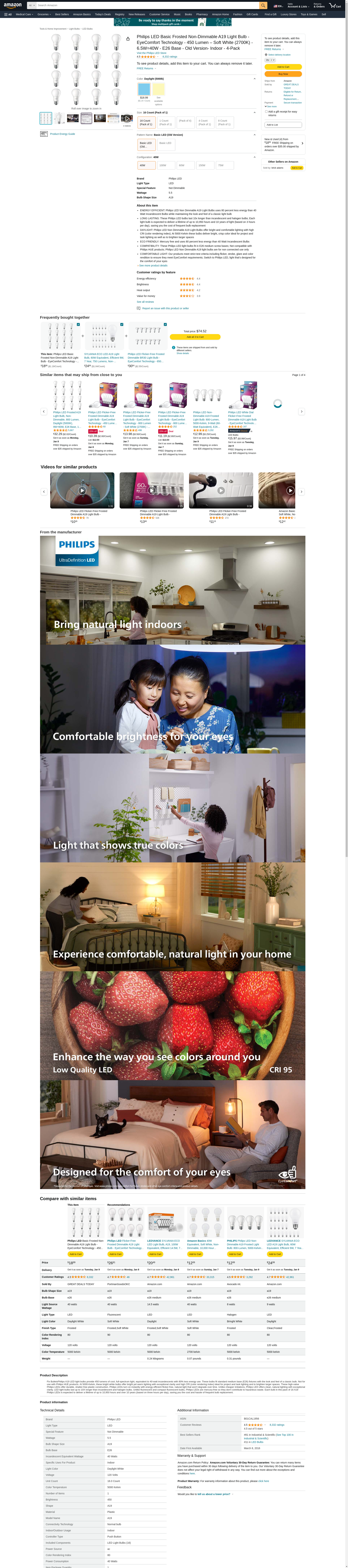 - COMFORTABLE LIGHT: Our products meet strict test criteria including flicker, strobe, glare and color rendition to ensure they meet EyeComfort requirements; Switch to Philips LED, light that’s designed for the comfort of your eyes