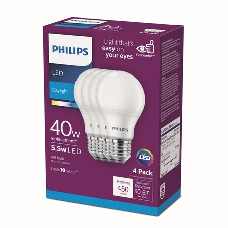Philips 461160 40W Equivalent Daylight Non-Dimmable A19 LED Light Bulb (4-Pack)