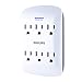 Get six times the power with the Philips 6 AC wall tap. Featuring six grounded AC outlets, The wall tap transforms your regular outlet into an efficient charging station. The space-saving design of the wall tap is ideal for any room in your home, regardless of size or setup. In the event of a surge, the wall tap includes 900 joules of surge protection to keep your connected devices safe from damage, while the LED indicator light stays on to let you know your surge protector is functioning properly. Use the wall tap as part of your permanent home or office setup or, for holidays and special occasions, create a centralized location for powering a room?s worth of electronic lights and decorations. Prioritize all of your devices at once with the Philips 6 AC wall tap.