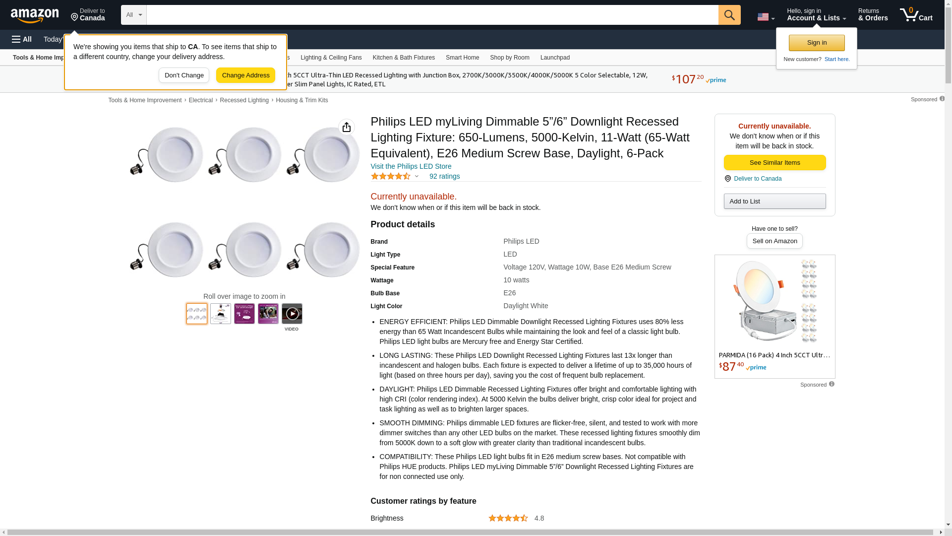 Philips 801274 65W Equivalent Dimmable Daylight Led Downlight, 5-6"