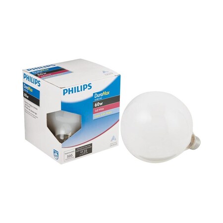 <p>Philips 60 Watt, 120 Volt, White glass, G40 globe shaped lamp design with aluminum medium screw base</p><ul><li><p>Traditional incandescent design provides outstanding color rendering</p></li><li><p>White color perfect for creating a more inviting atmosphere</p></li></ul>