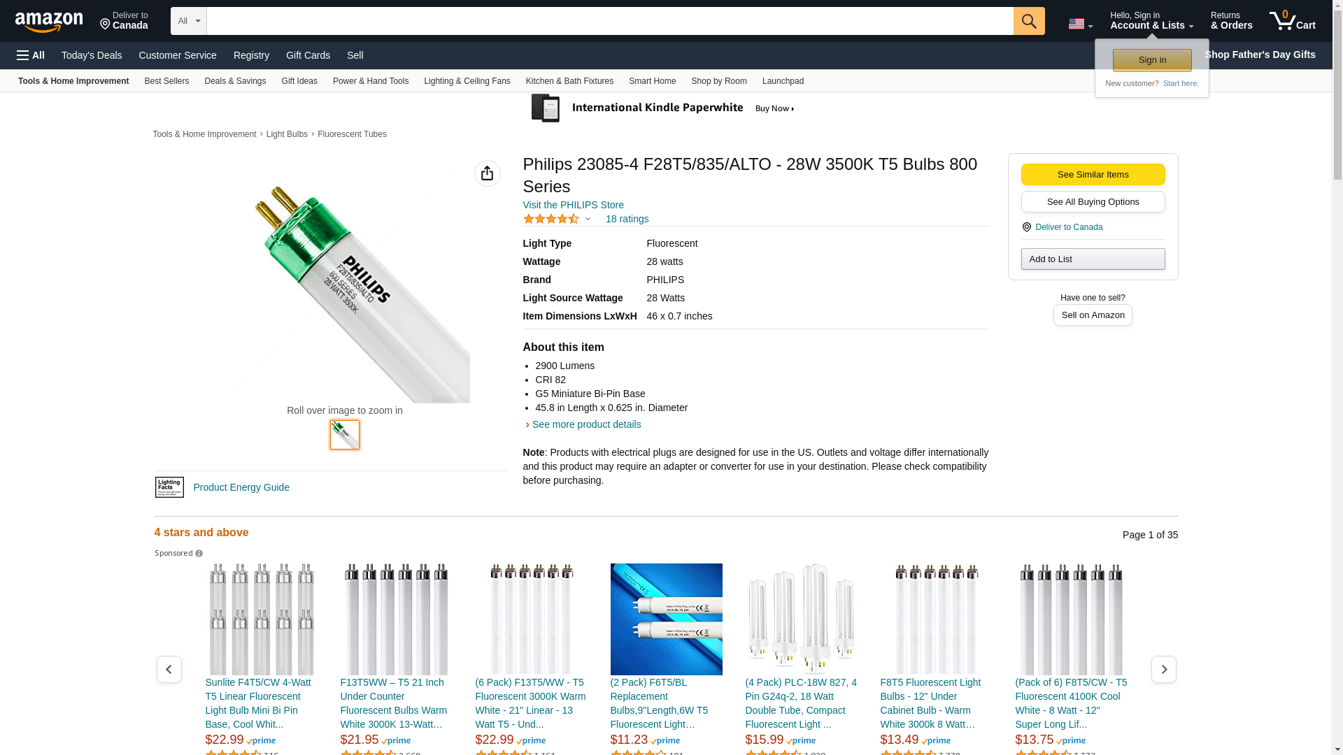 The ALTO Philips 23085-4 F28T5/835/ALTO 28-watt T5 linear fluorescent tube Lamps are incredibly powerful, environmentally responsible, long life lamps with an ultra-slim profile. It has a warm color temperature of 3500K.