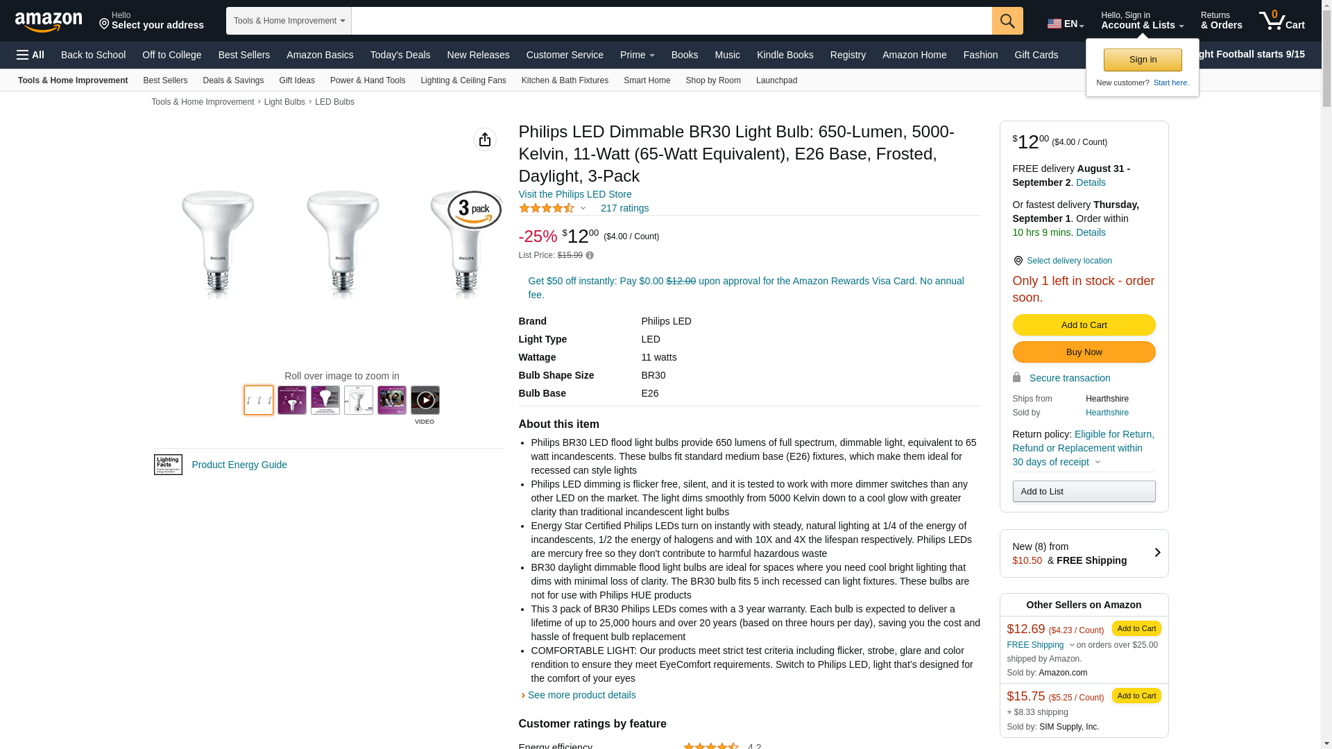 Philips LED Dimmable BR30 Light Bulb: 650-Lumen, 5000-Kelvin, 11-Watt (65-Watt Equivalent), E26 Base, Frosted, Daylight, 3-Pack