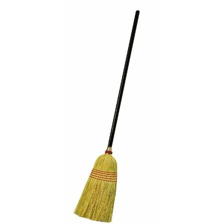 Janitor and hotel type broom. 100% hurl corn bristles for sweeping fine particles. 5 sew stitching to keep shape and provide strength. 14" wide sweeping surface. 42" L. x 1-1/8" diameter black lacquered wood handle. No. 1047: Broom Width: 14", Color: Yellow, Handle Length: 42", Handle Material: Lacquered Wood, Bristle Material: Hurl Corn w/5 Sews, Brace Material: N/A