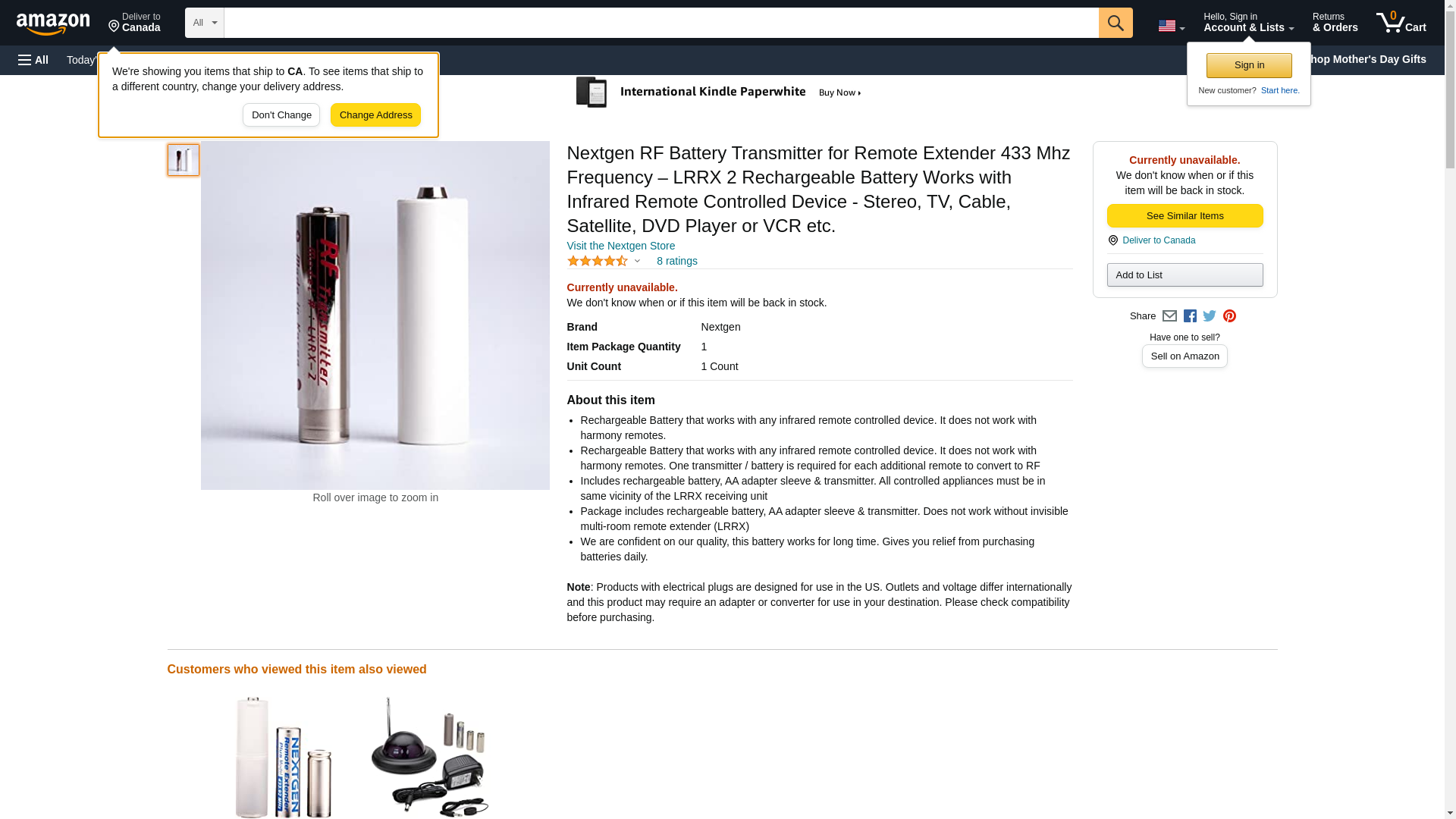 Nextgen RF Battery Transmitter for Remote Extender 433 Mhz Frequency – LRRX 2 Rechargeable Battery Works with Infrared Remote Controlled Device - Stereo, TV, Cable, Satellite, DVD Player or VCR etc.