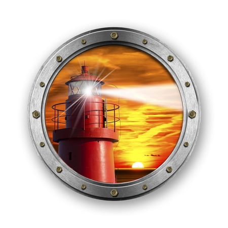 <ul><li>Diameter: 24 in.</li><li>For indoor or outdoor use</li><li>Lighthouse beacon during an orange sunset</li><li>Constructed from steel</li><li>Powder-coated and color infused</li></ul>