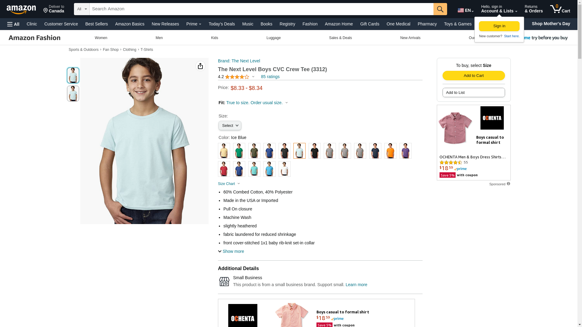 Next Level Youth CVC Crew - ICE BLUE - M - (Style # 3312 - Original Label)