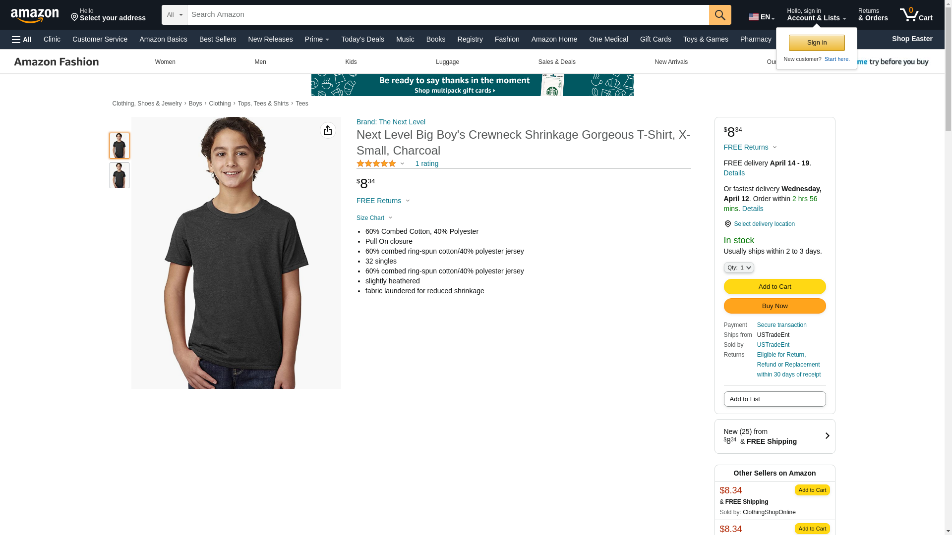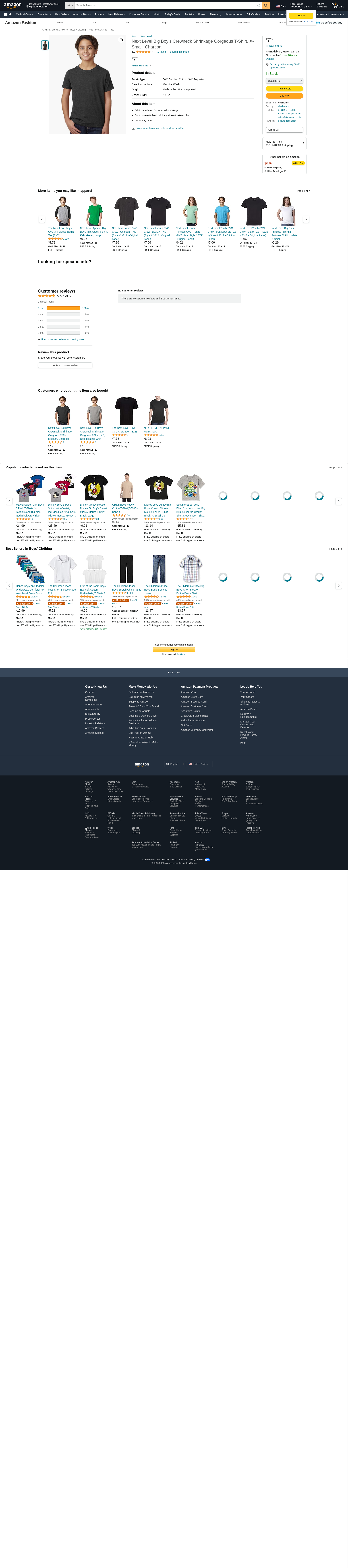 Next Level Big Boy's Crewneck Shrinkage Gorgeous T-Shirt, Small, Charcoal