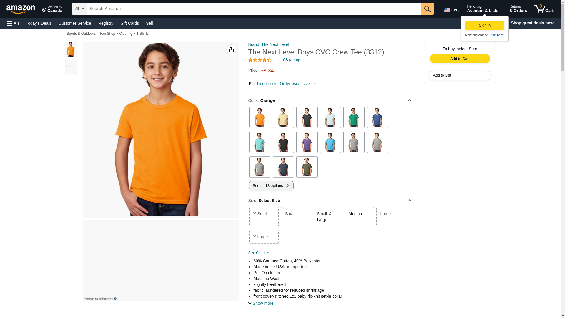 Next Level Youth CVC Crew - Orange - L - (Style # 3312 - Original Label)