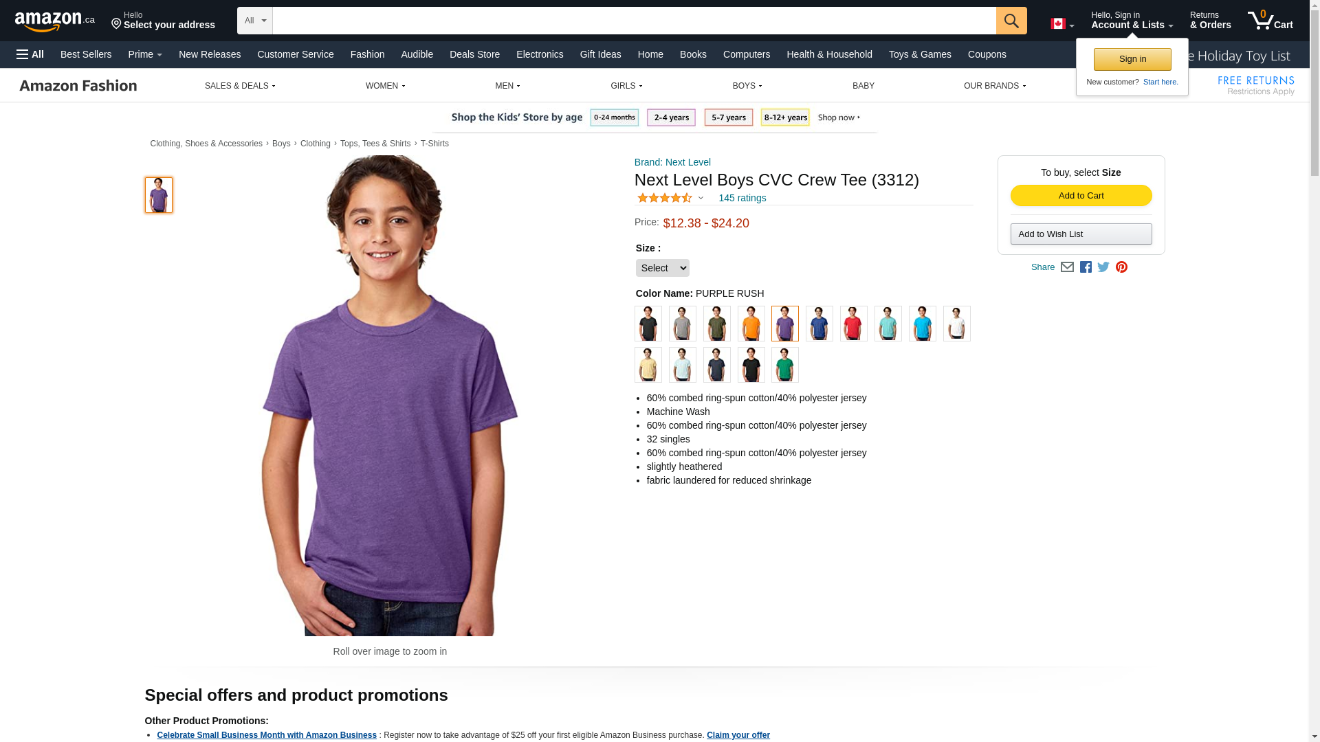Next Level Youth CVC Crew, Purple Rush, Large