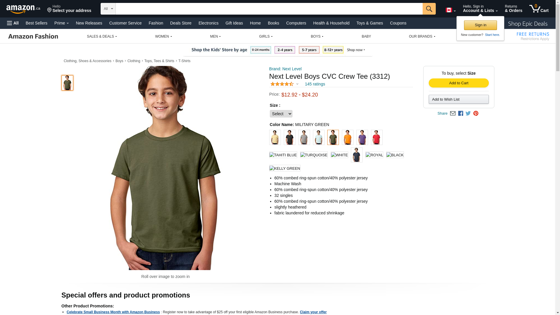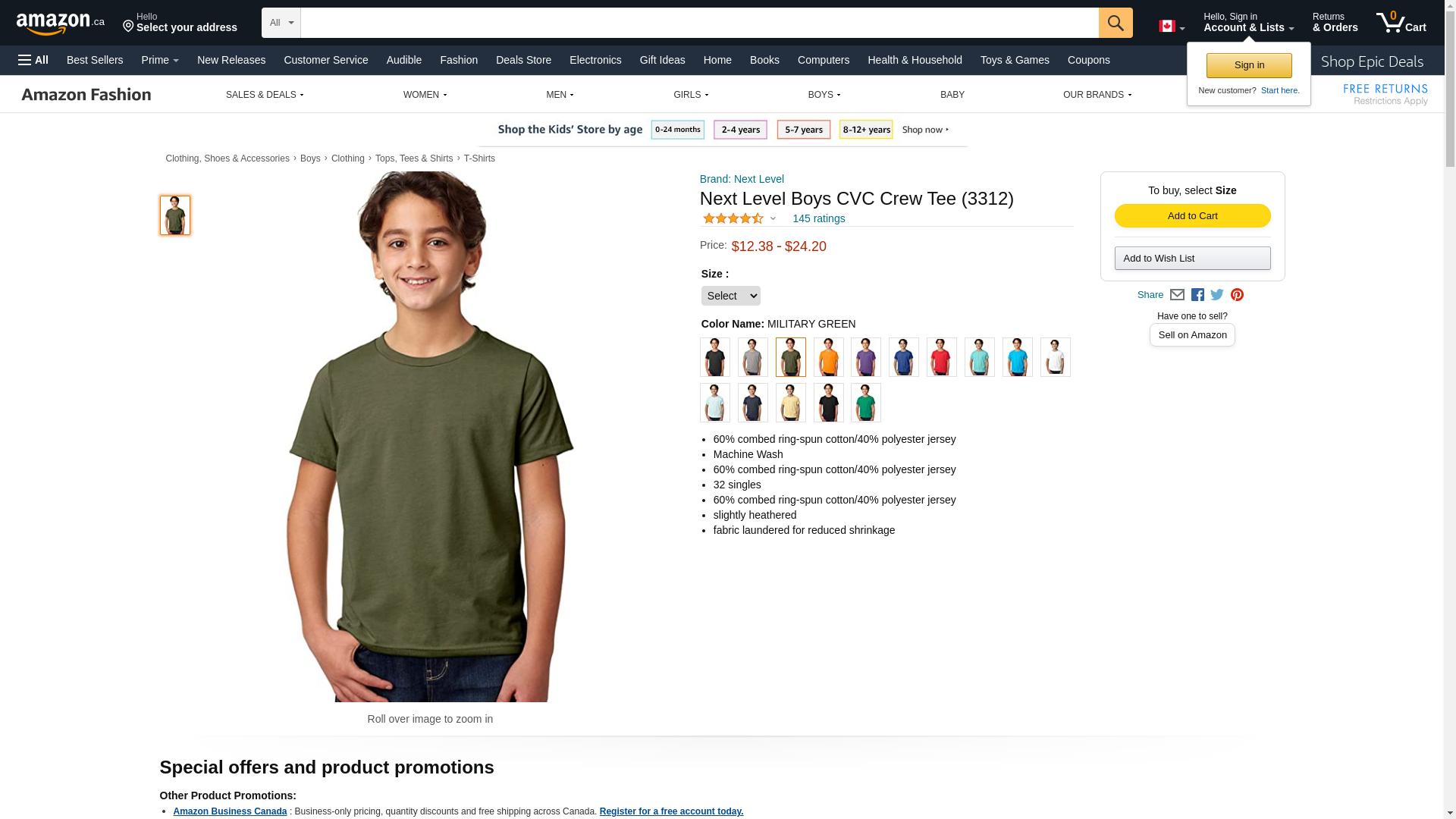 Next Level Youth CVC Crew - MILITARY GREEN - L - (Style # 3312 - Original Label)