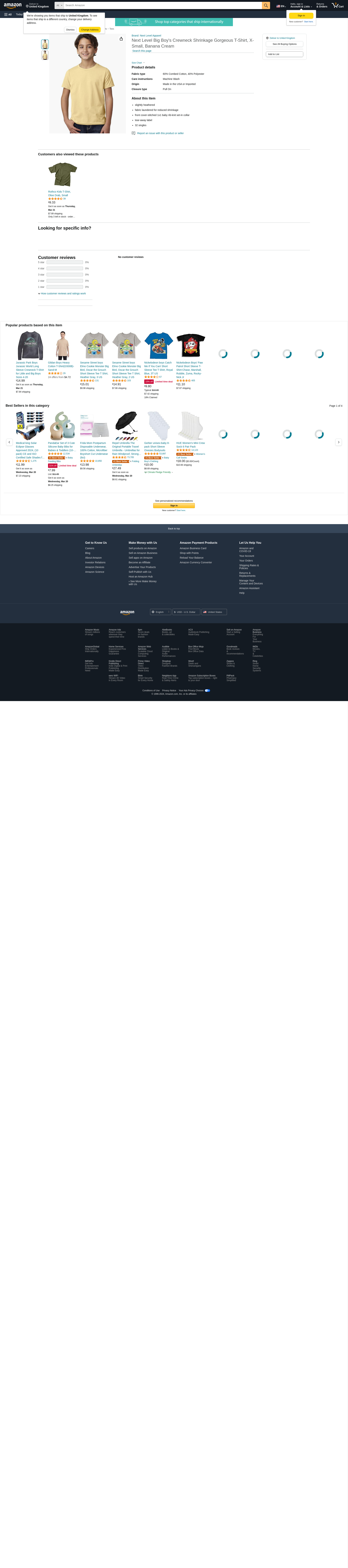 Next Level Big Boy's Crewneck Shrinkage Gorgeous T-Shirt, X-Small, Banana Cream