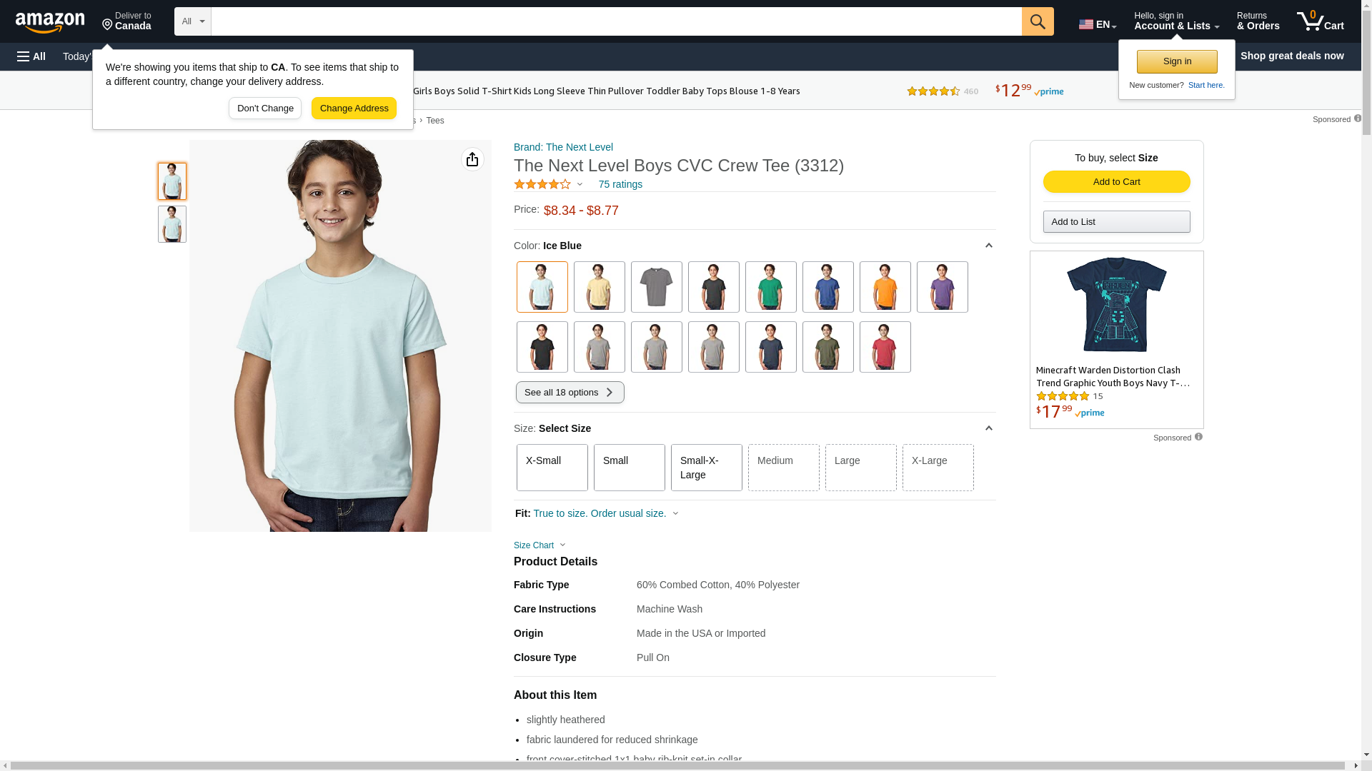 Next Level Youth CVC Crew, ICE Blue, X-Small