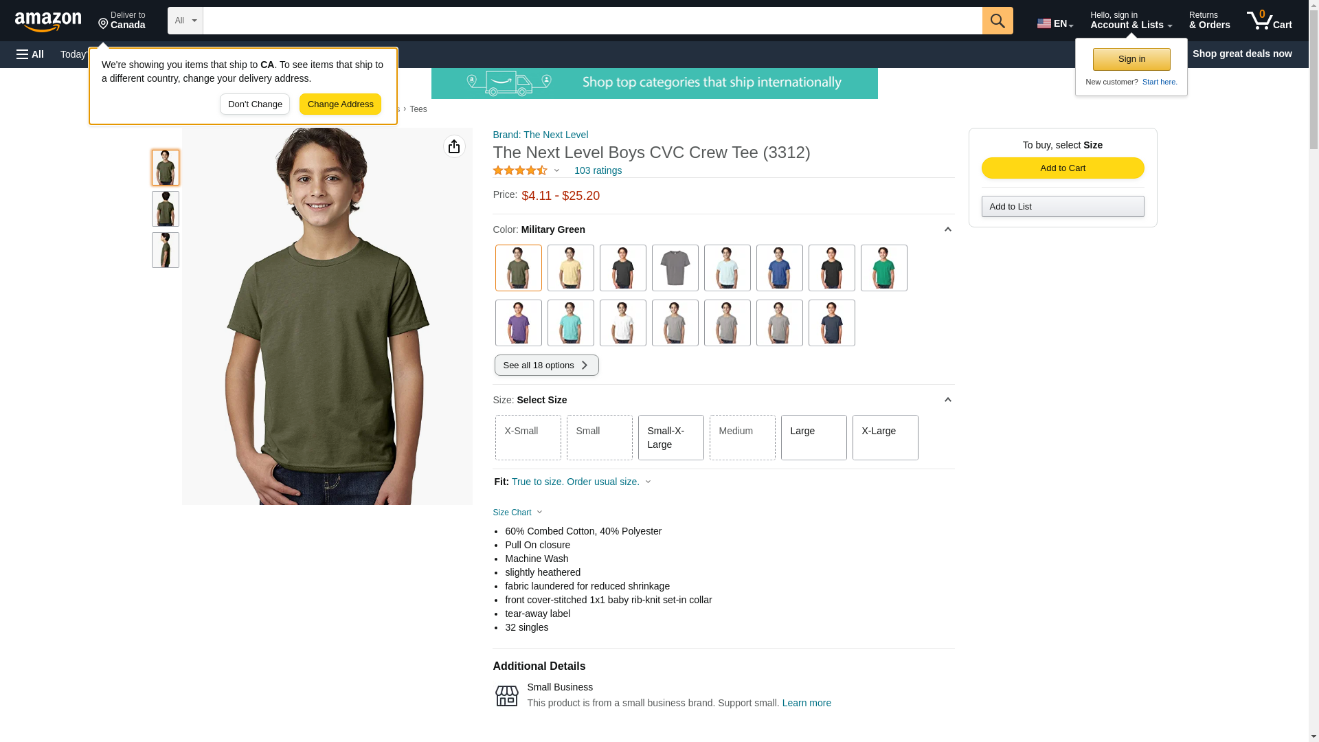 Next Level - Youth CVC Short Sleeve Crew - 3312 - XL - Military Green