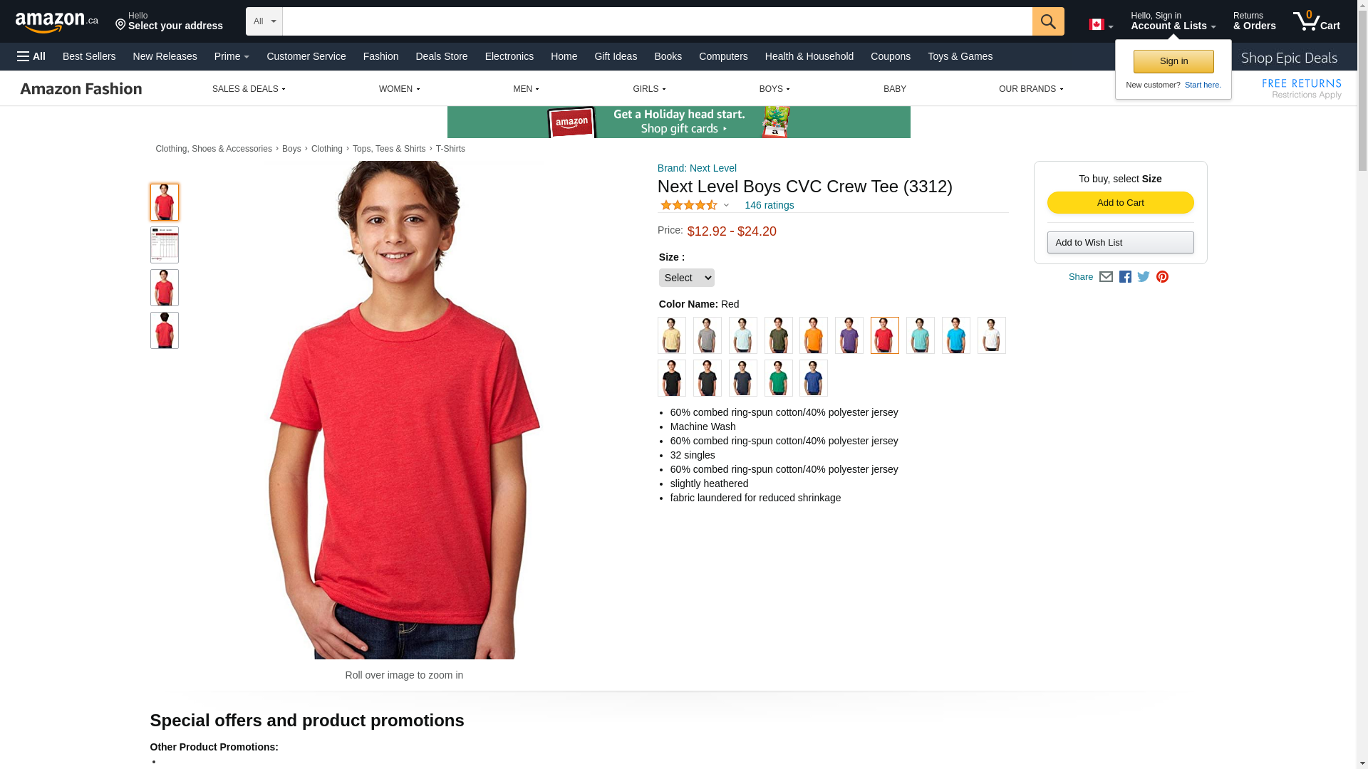 Next Level Apparel Boy's Cotton/Poly CVC Crew - 3312, Red, X-Large