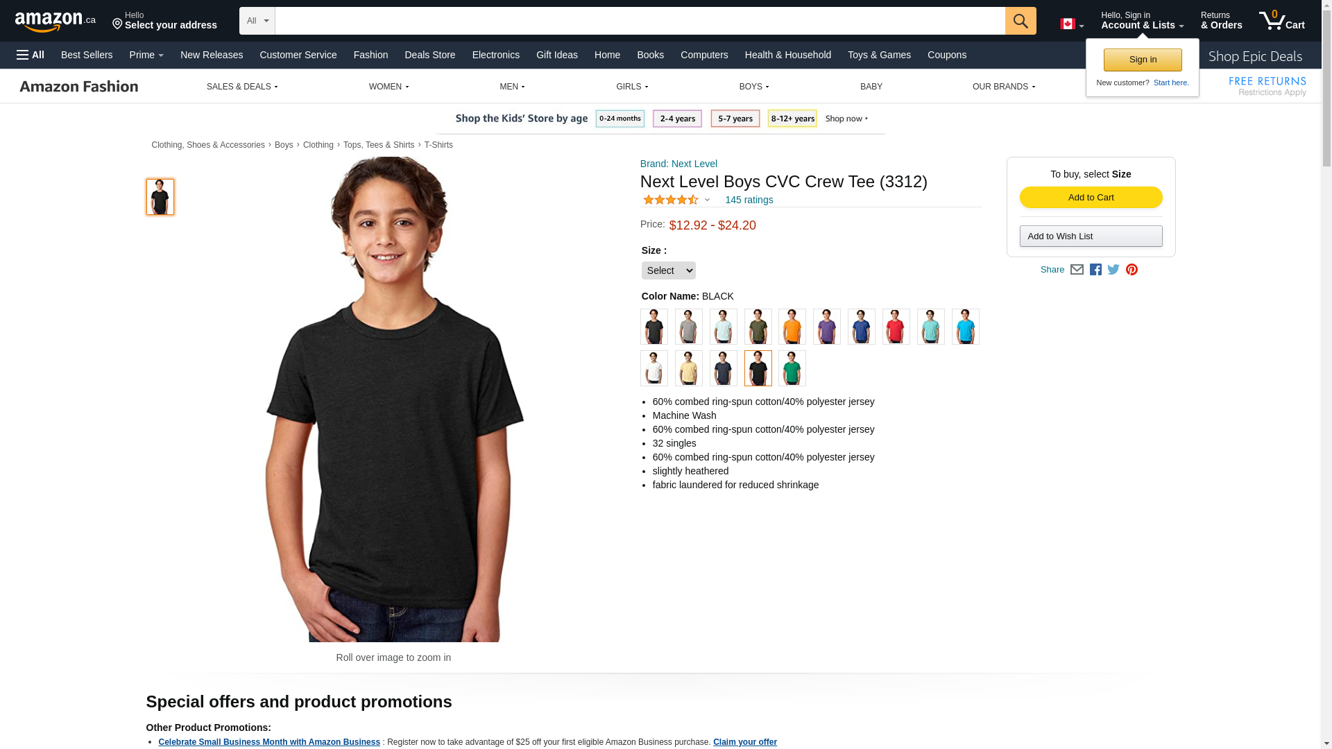 Next Level Apparel Boy's Cotton/Poly CVC Crew - 3312, Black, Large