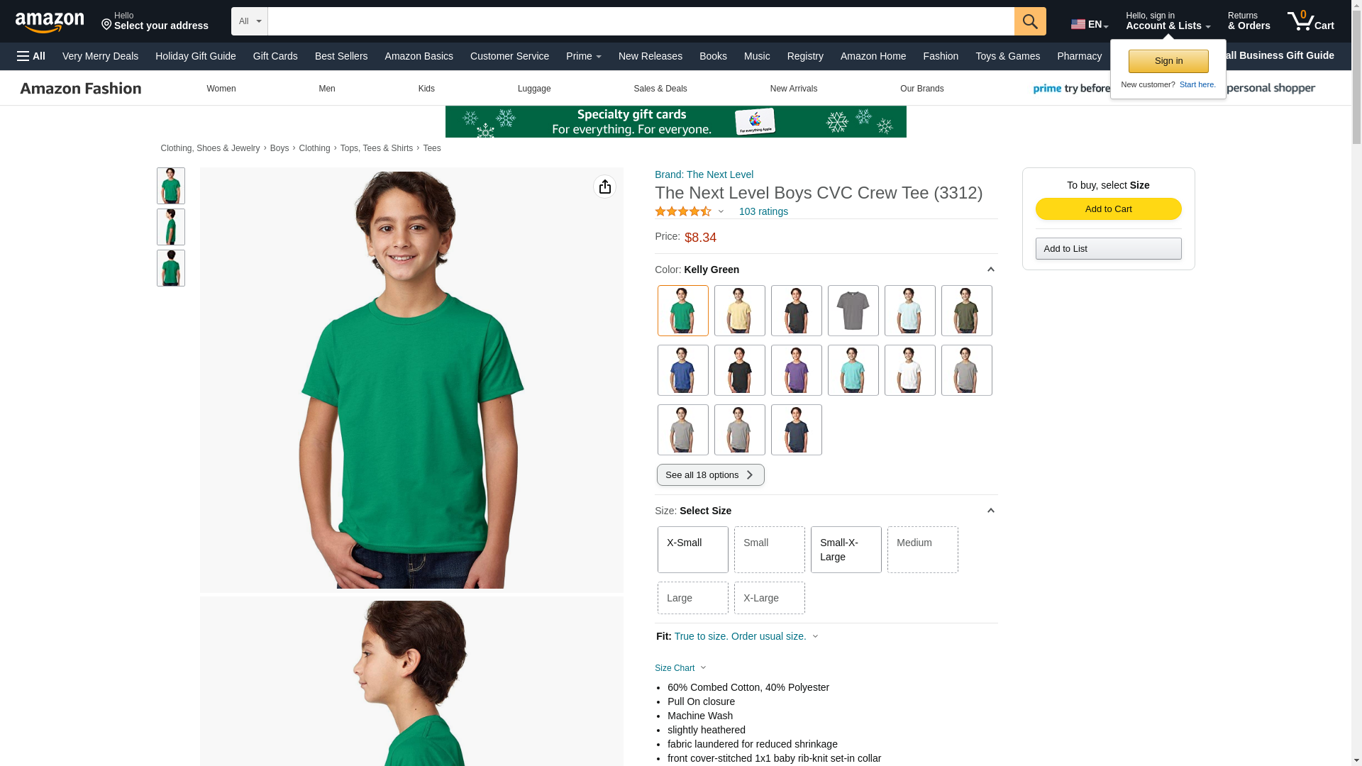 Next Level Youth CVC Crew - Kelly Green - S - (Style # 3312 - Original Label)