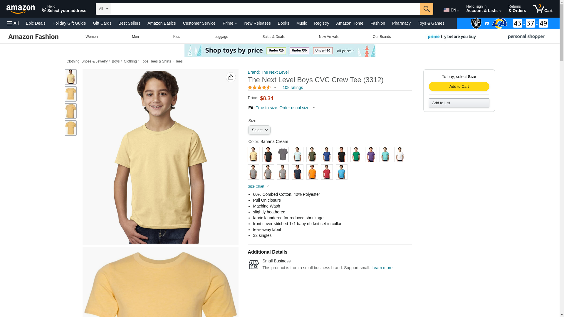 Next Level Youth CVC Crew, Banana Cream, Small