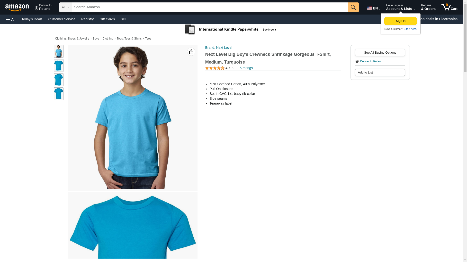 Next Level Youth CVC Crew, Turquoise, Medium