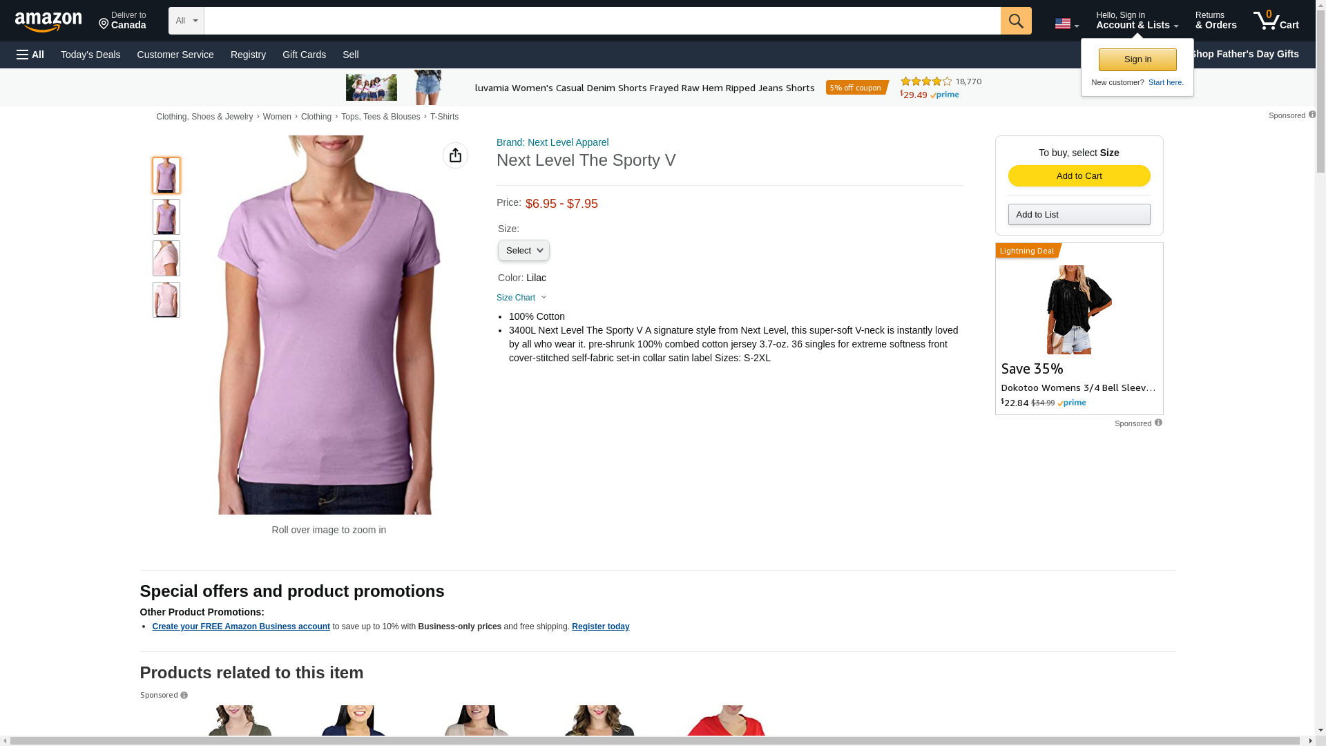 Next Level Ladies Perfect Sporty V - Lilac - L - (Style # 3400L - Original Label)