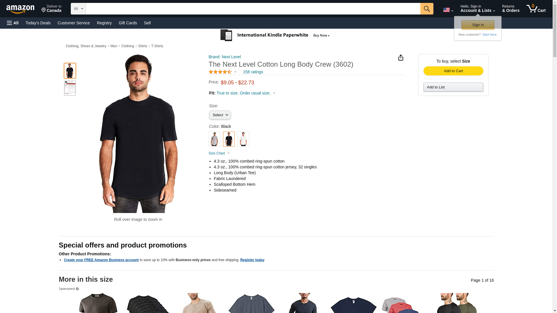 Next Level Men's Cotton Long Body Crew XS BLACK