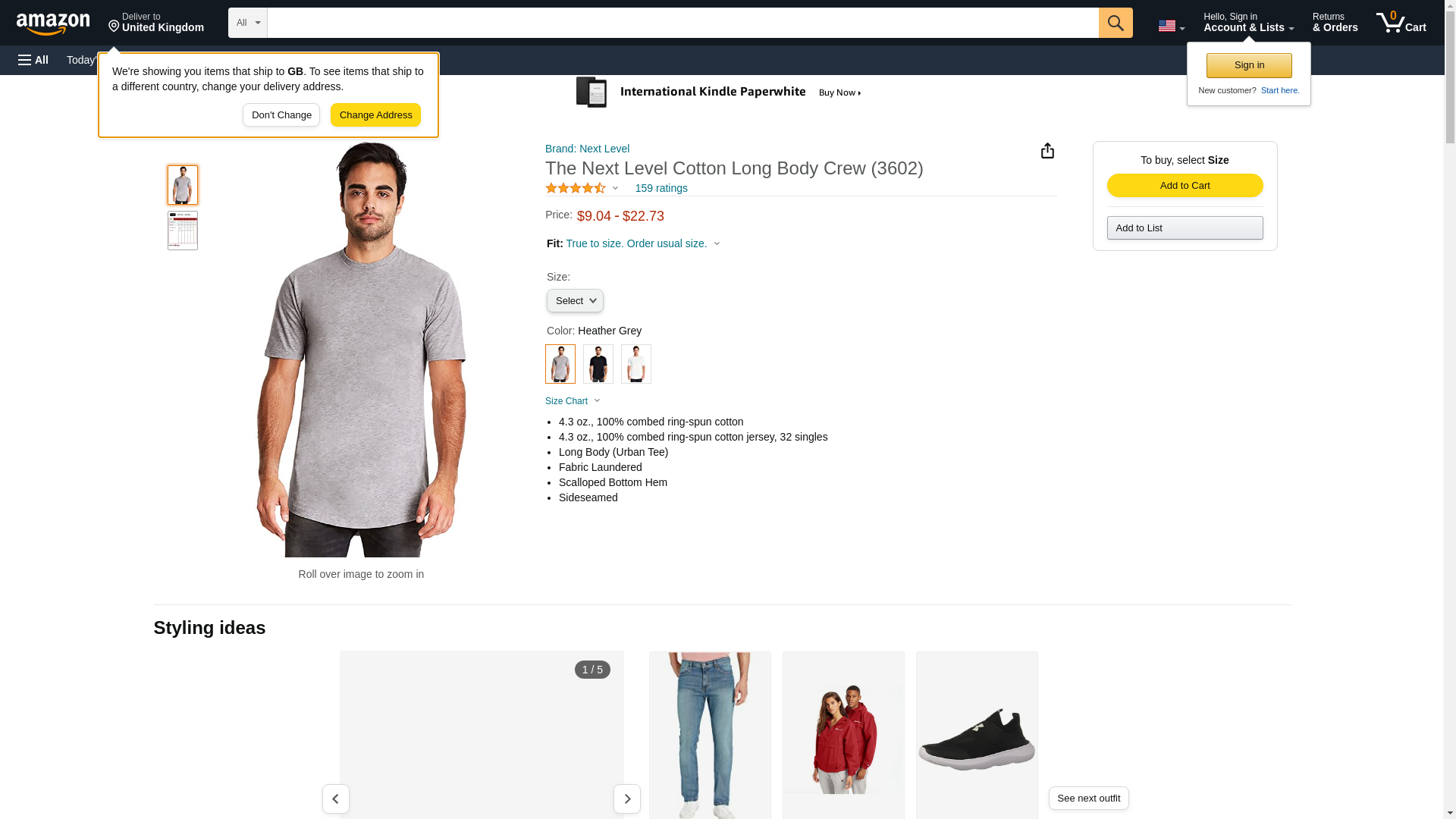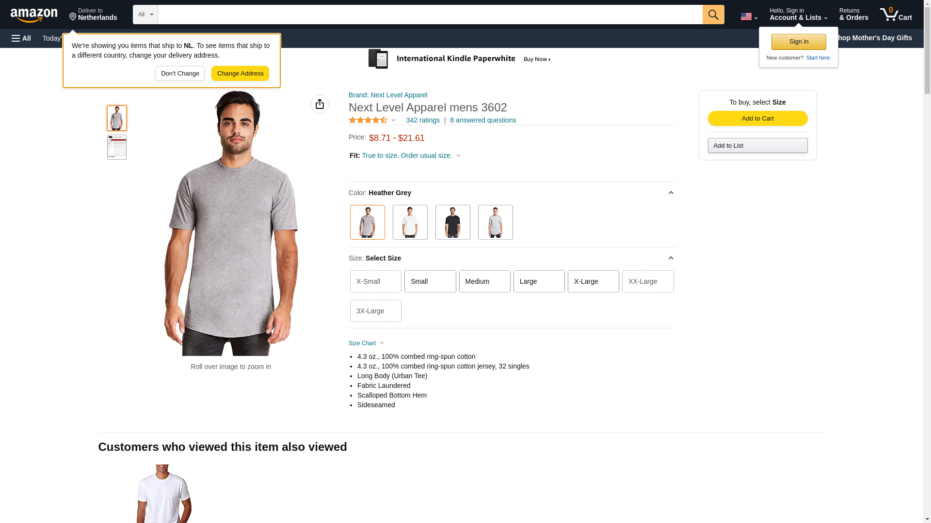 Next Level 3602 Mens Cotton Long Body Crew, Heather Gray, XX-Large