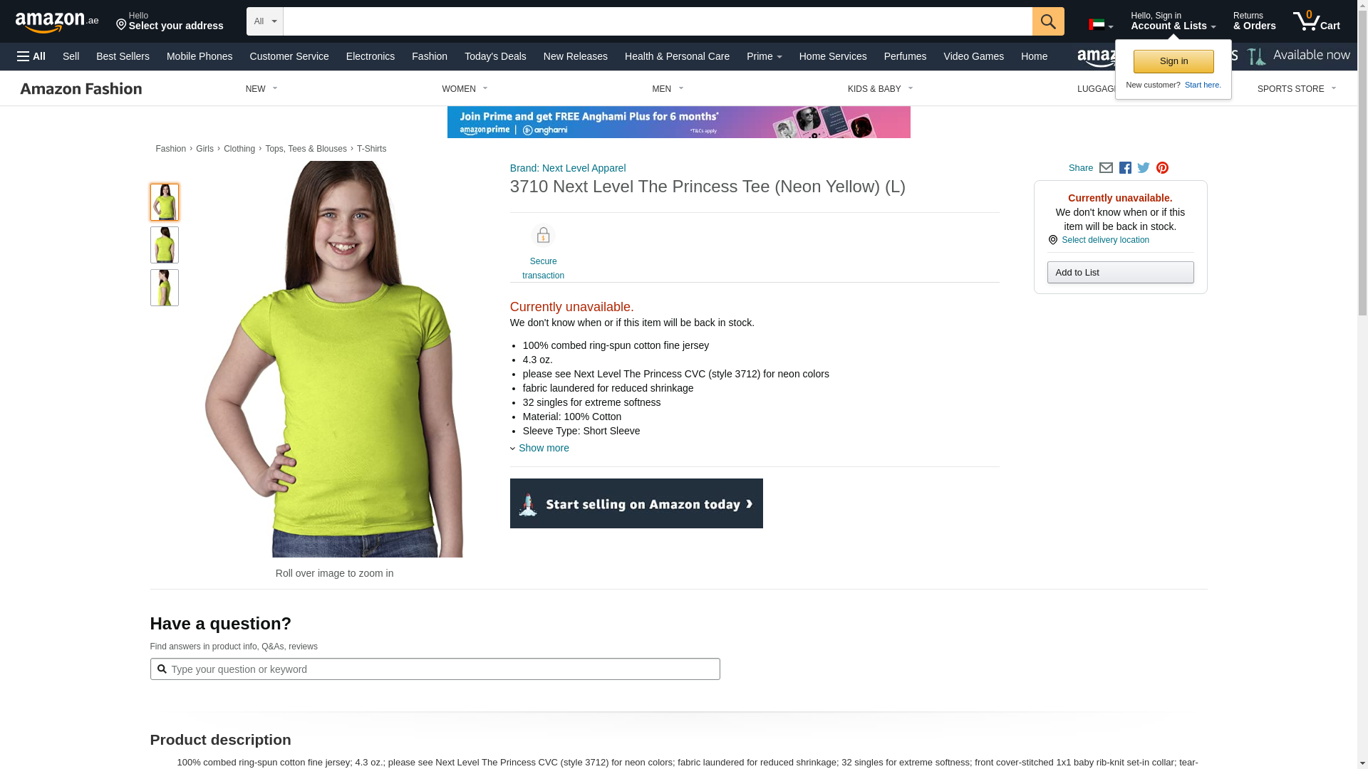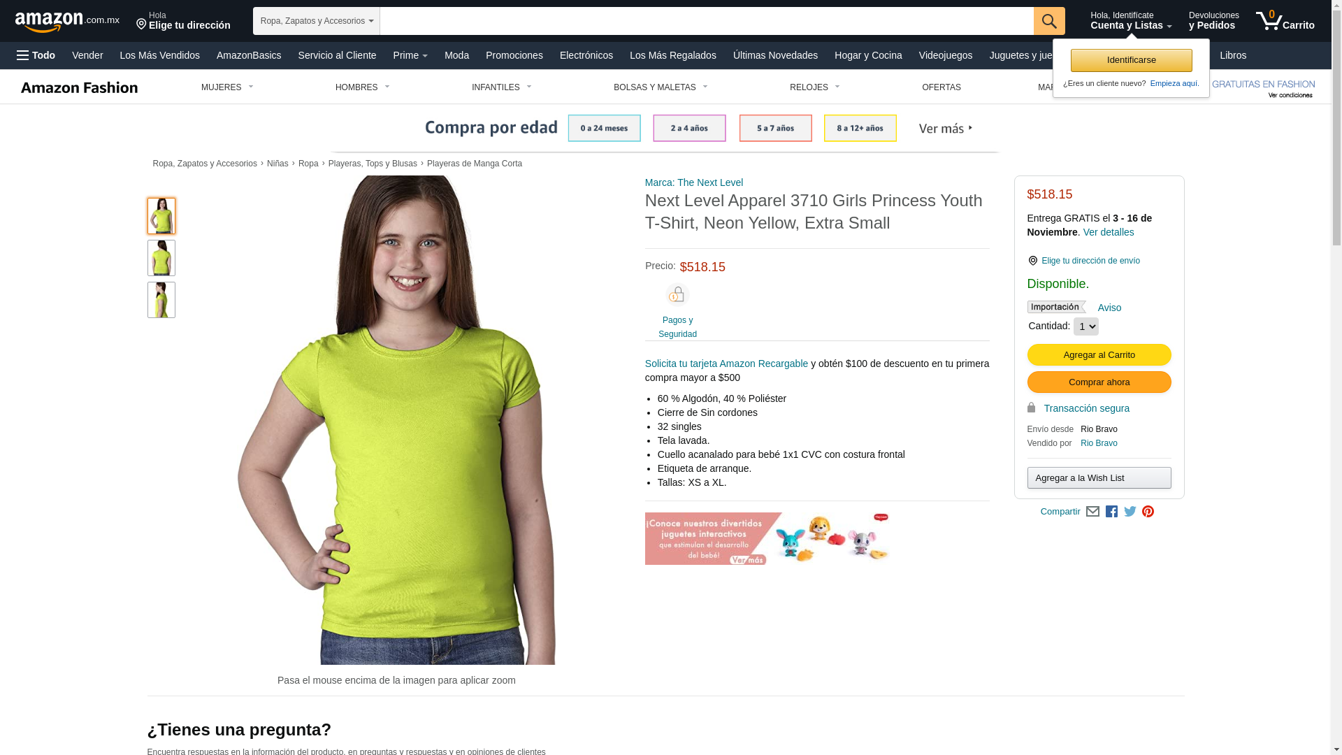 Next Level Apparel 3710 Girls Princess Youth T-Shirt44; Neon Yellow44; Small