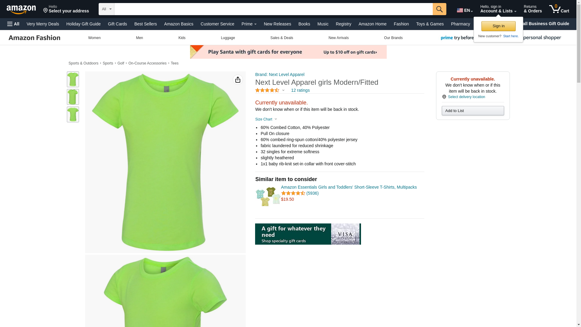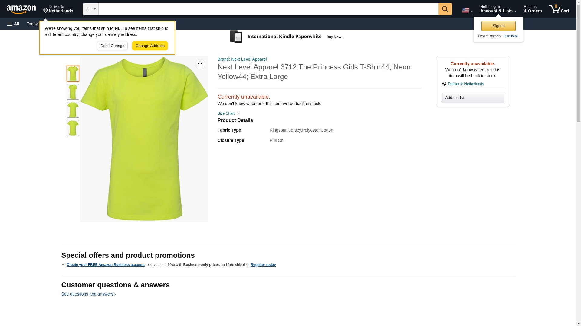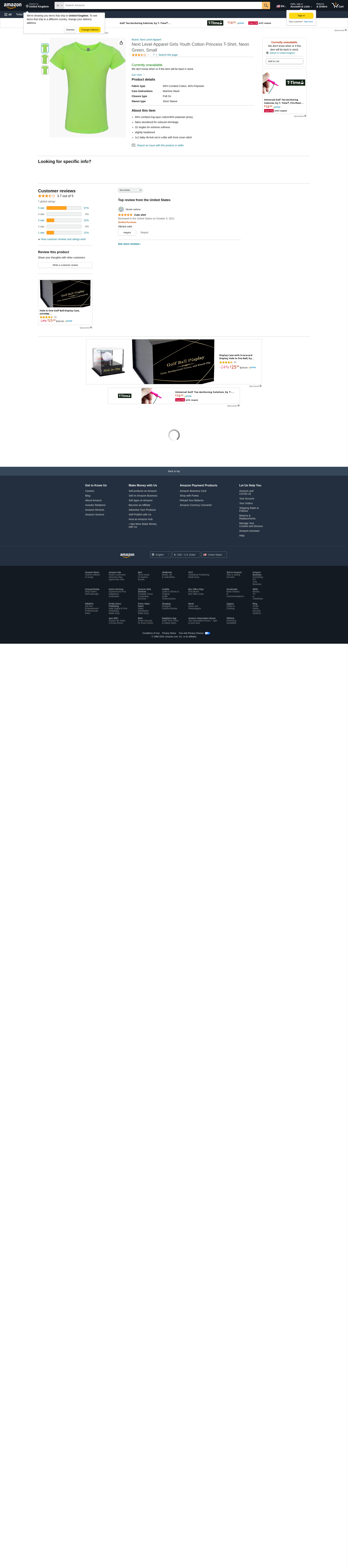 Next Level Apparel Girls Youth Cotton Princess T-Shirt, Neon Green, X-Large