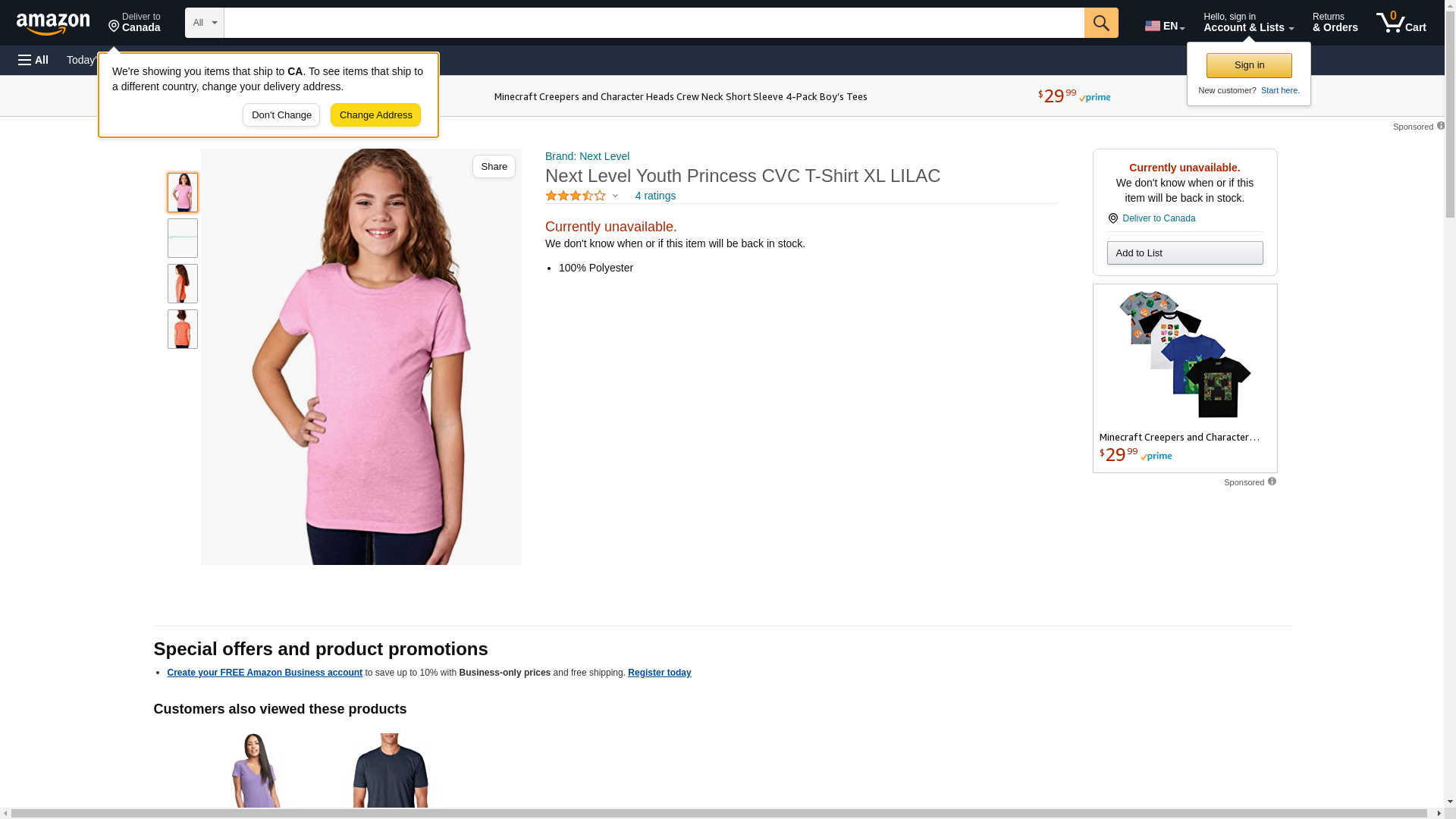Next Level Youth Princess CVC T-Shirt - Lilac - XS - (Style # 3712 - Original Label)