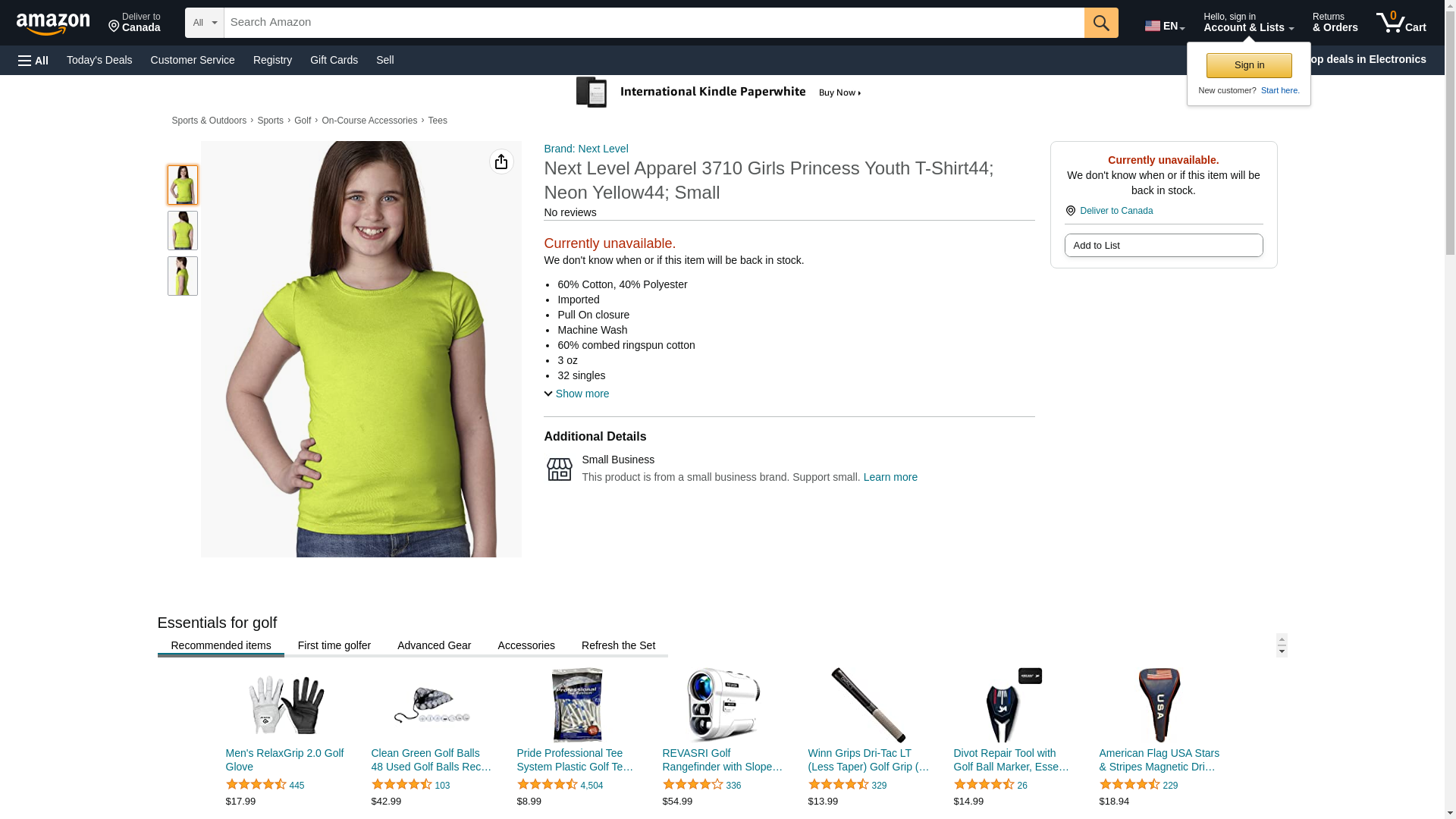 Next Level Apparel Girls Youth Cotton Princess T-Shirt, Neon Green, Small