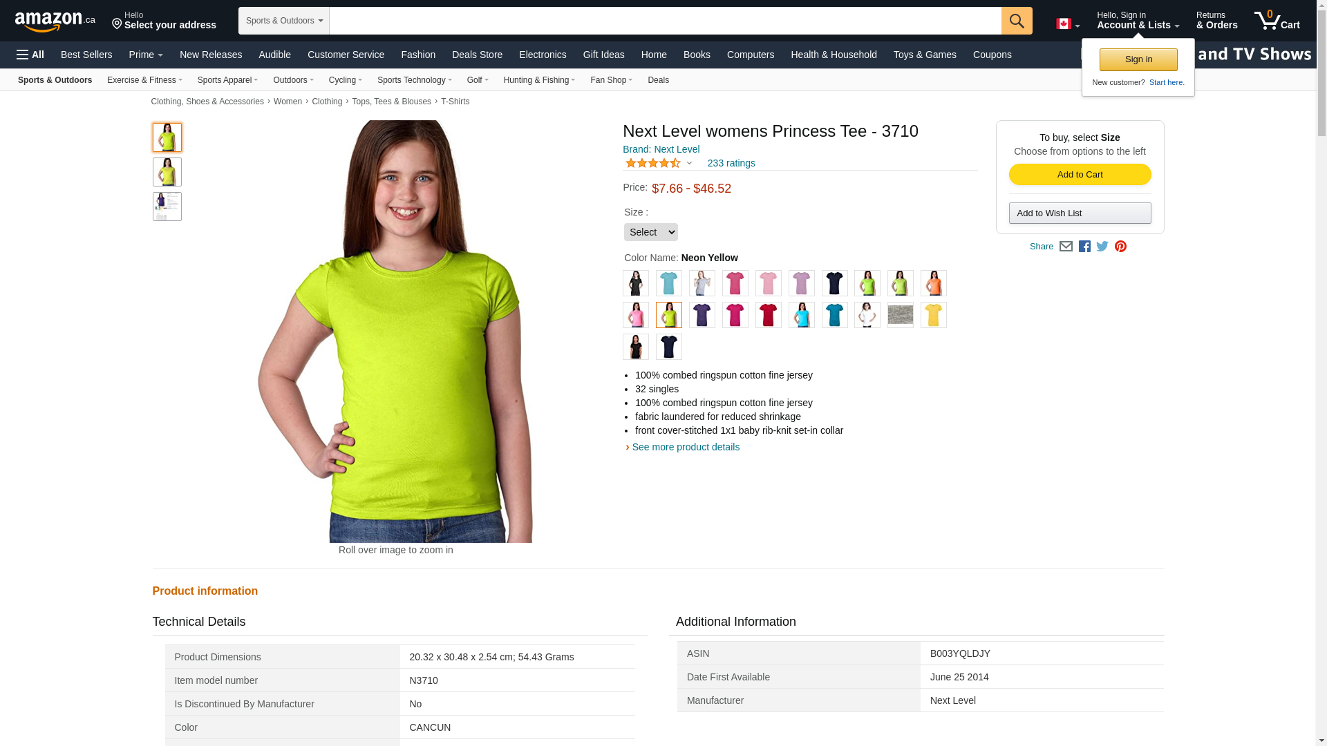 NEXT LEVEL 3710 The Princess Tee - Large - Neon Yellow